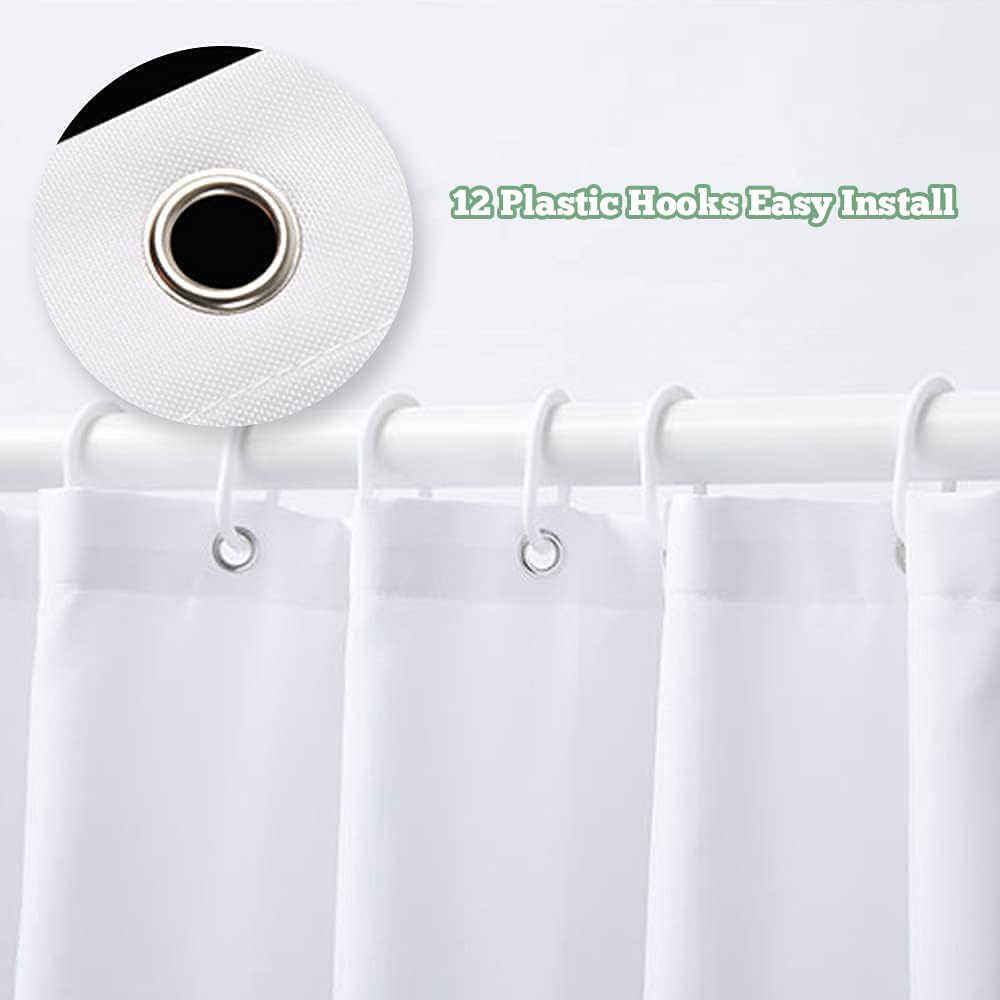 Q: What material is the MESHELLY shower curtain made of?A: The MESHELLY shower curtain is made from 100% waterproof polyester, ensuring durability and resistance to water.