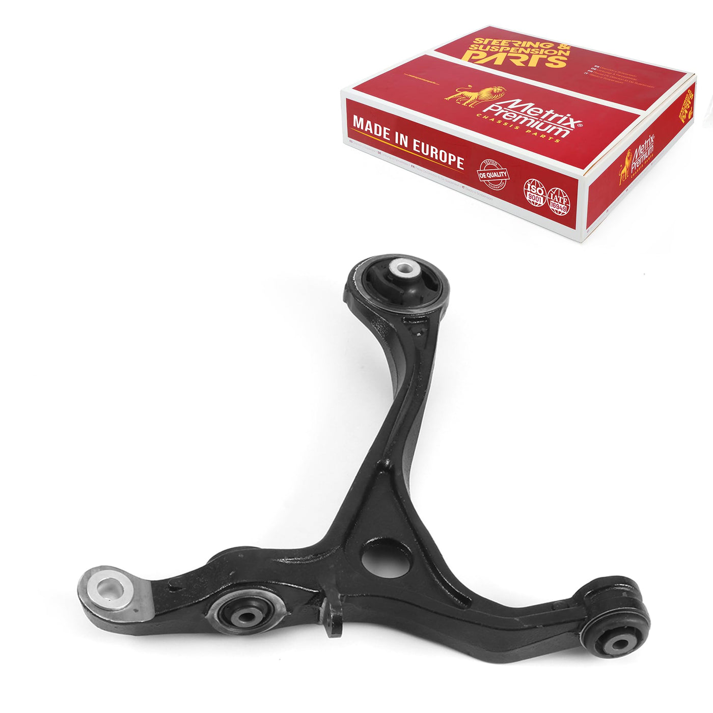 Metrix Premium Chassis Parts Control Arms are precision-engineered to meet or exceed OEM specifications. Our control arms provide seamless fitment, enhanced handling, and long-lasting support for European, Asian, and American passenger cars and lightweight commercial vehicles.At Metrix Premium Chassis Parts, we specialize in a comprehensive range of high-quality automotive parts, including control arms, ball joints, control arm bushings, sway bar bushings, stabilizer bar links, inner and outer tie rod ends, pitman arms, idler arms, drag links, center links, track bars, adjusting sleeves, brake rotors, and brake pads.Trusted by professionals and DIYers, our products are precision-designed for optimal performance, safety, and ease of installation. Our control arm lineup includes front and rear upper control arms, lower control arms, and control arm kits, with most models featuring pre-installed ball joints and control arm bushings. These components are pre-greased to reduce wear and extend lifespan, delivering smooth and stable handling.For complete front end rebuild projects, our catalog also offers inner tie rods, outer tie rod ends, and sway bar links, allowing you to restore or upgrade your vehicle's suspension and steering system with confidence.Key Features:-Precision Engineering: Most control arms with ball joints are designed for exact fitment, proper alignment, and enhanced steering control.-Durable Construction: Manufactured with high-strength, corrosion-resistant materials to withstand heavy loads and challenging driving conditions.-Comprehensive Compatibility: Products are crafted to seamlessly integrate with various vehicle systems, ensuring stability and support.-Ease of Installation: Designed to simplify installation and reduce downtime.Every product from Metrix Premium Chassis Parts undergoes rigorous testing to ensure superior quality, reliability, and performance.