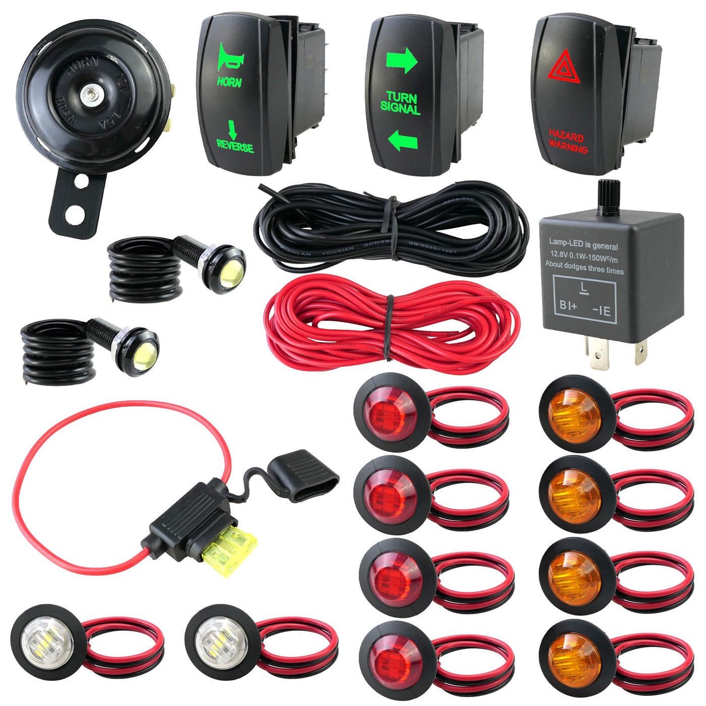 Mhaedwv Universal Atv Utv Sxs Turn Signal Kit - Turn Signal Light Kit, Street Legal Rocker Switch, Side By Side Turn Signal Kit