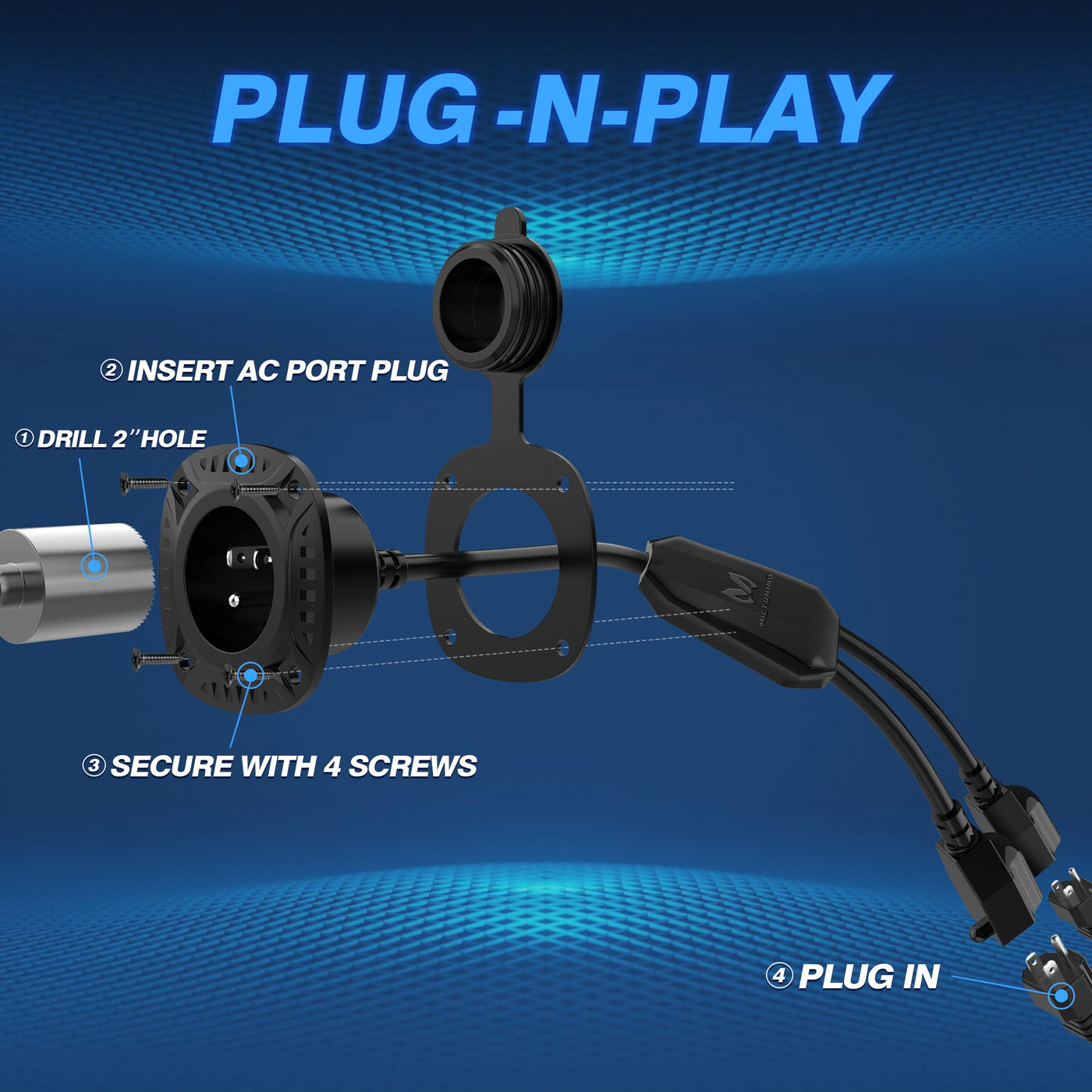 Mictuning 15Amp 250V Ac Port Plug For Easy Access To An Ac Charging Port. Dual 18-Inch Cord Is The Perfect Length To Reach Your Current Electronic Device Cords And 14Awg Copper Wire Allows Maximum Current Flow. Designed To Add An Extra Ac Power Connection On Your Rvs, Boats, Golf Cart, Pickups, Towing Vehicles, Cabins, Etc. Perfect For Engine Block Heaters, Battery Chargers, Rv And Marine Charging Ports, And Home Improvement Applications. Its Water-Tight Cap Makes It Accessible In A More Convenient Location If Mounted To The Exterior Of Any Vehicle Or Equipment. Plug-And-Play, Just Need A 2-Inch Drilling Hole, No Hand Wiring Or Modifying Cables Needed, Bonus Self-Tapping Screws Included. Package Included: 1X Ac Power Port Plug 4X Screws