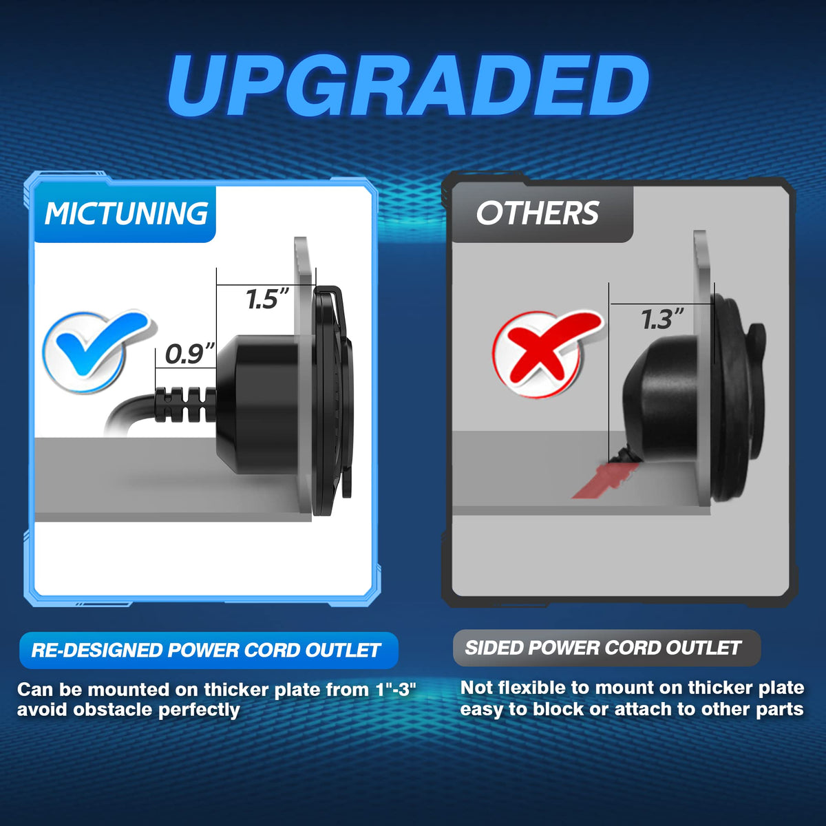 Q: How do I install the MICTUNING AC Port Plug?A: To install the MICTUNING AC Port Plug, simply drill a 2-inch hole at your desired mounting location and secure it with the included 4 screws. No additional hand wiring or cable modification is needed.