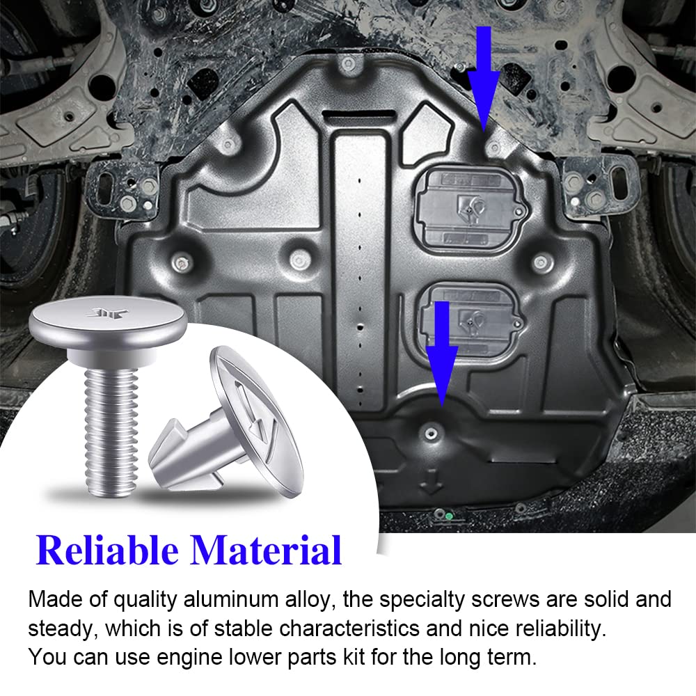 Note: Please check the size of the corresponding component model of your car before buying to avoid the wrong purchase. Aluminum Alloy Material It 's rust proof, corrosion resistance, not easy to break or deformation, stable performance, good reliability, durable. OEM Number Lower engine cover pin screws 90674-TY2-A01 Radiator support splash guard bolts 90105-TBA-A00. Engine Shield Cover Bolt Kit The 6pcs engine hood screws are fixed to the metal cover and can be removed during oil changes. The two lower cover bolts, also known as the rear protection bolts, front guard bolts, radiator bracket splash bolts, and lower cover bolts.