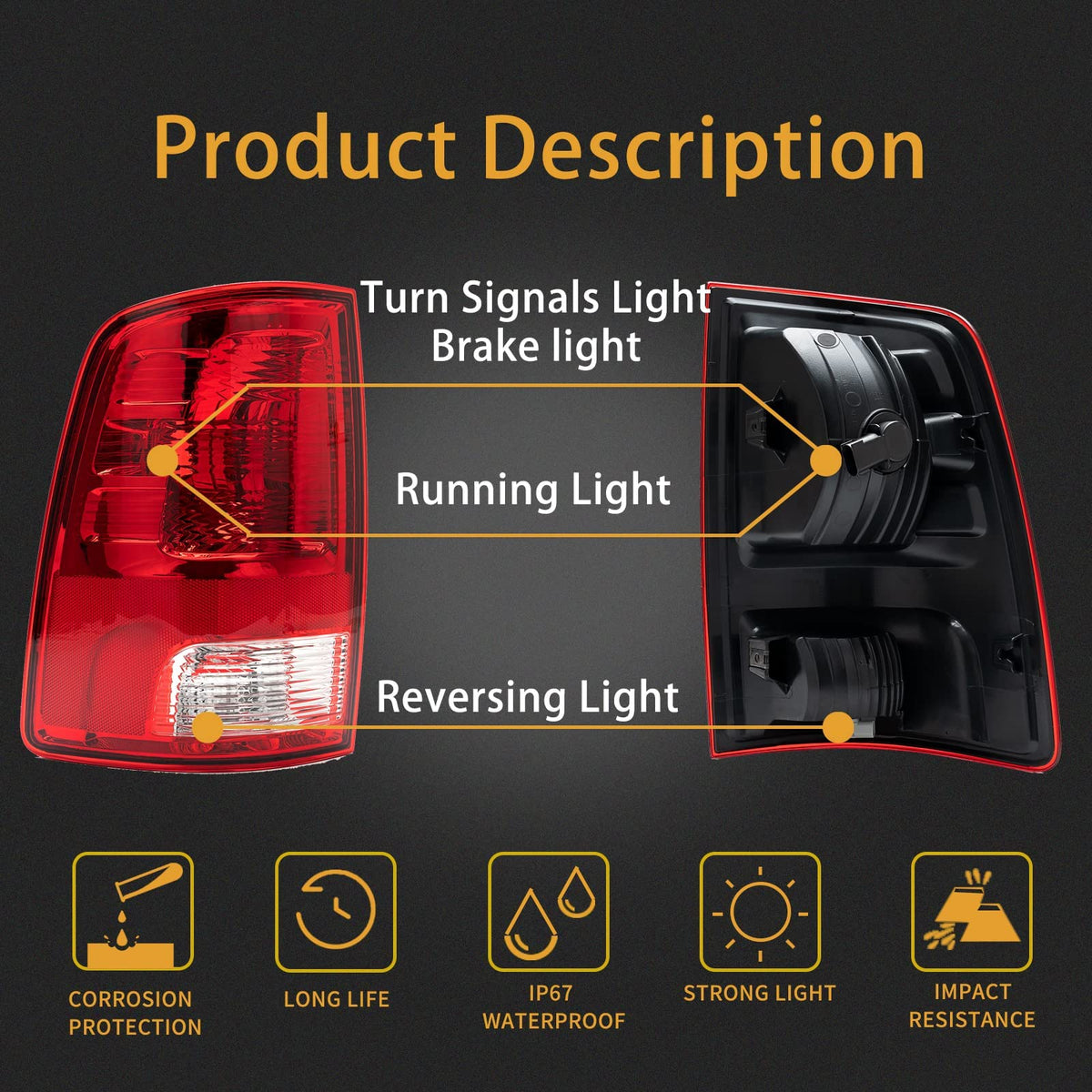 Package Included: 1×Driver Left Tail Light + 1×Passenger Right Tail Light(With Light Bulb)
