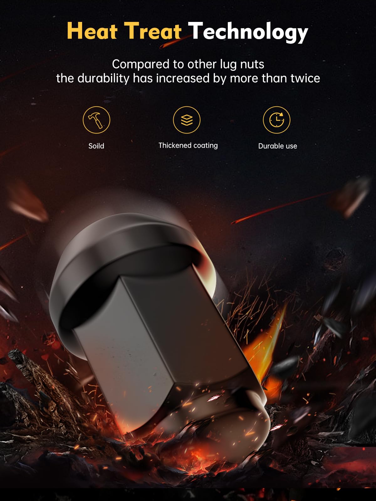 Q: What material are the MIKKUPPA Lug Nuts made from?A: The MIKKUPPA Lug Nuts are made from high-strength, cold-forged, and heat-treated steel, providing excellent durability and resistance to rust. The electrophoretic paint finish further enhances their protection against corrosion.