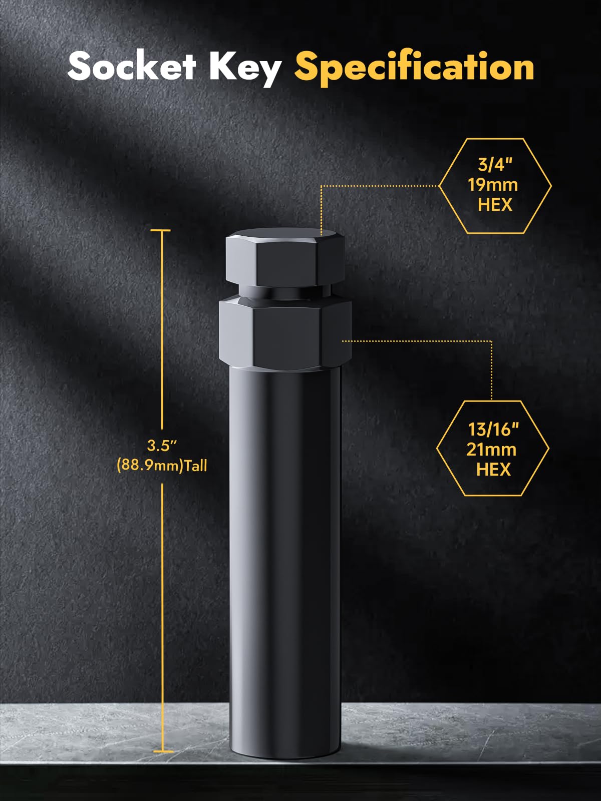 Q: What is the size of the socket and how does it affect its use?A: This lug nut socket features a 17mm hex size, which is ideal for replacing lug nuts on compatible vehicles. The 6-spline design provides a secure fit, ensuring that the socket does not slip during use.