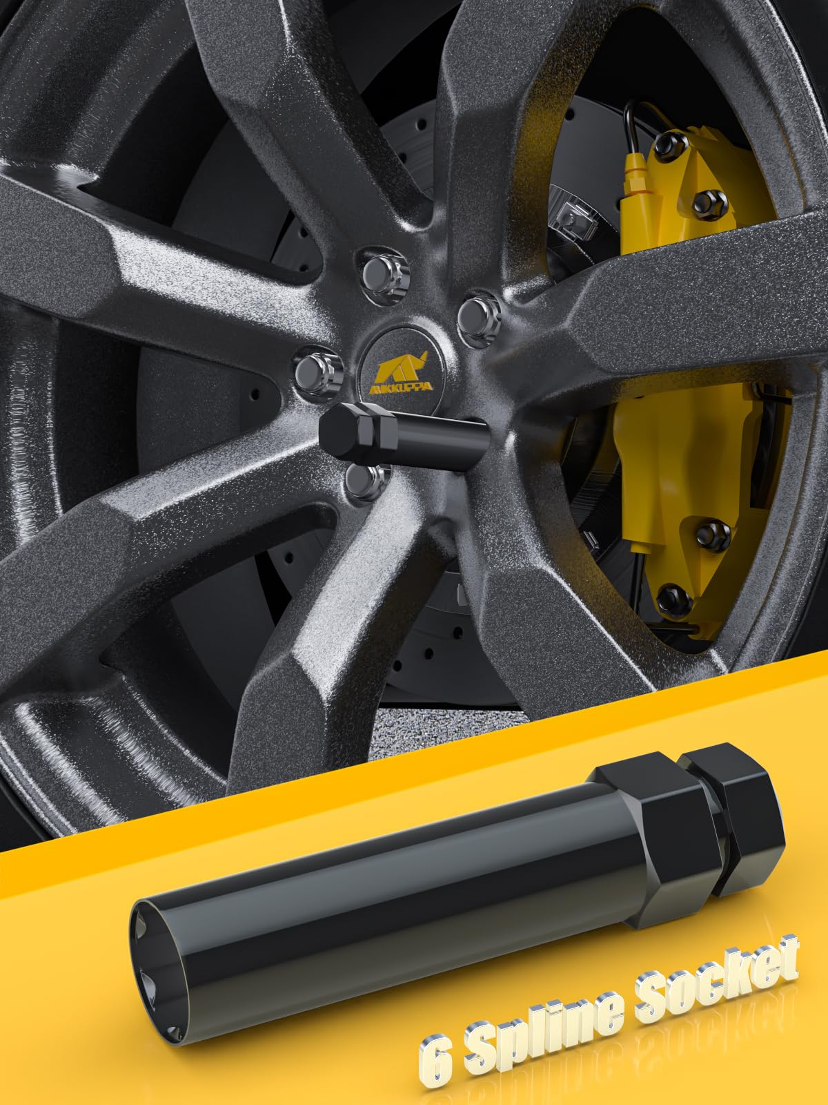 Mikkuppa 6 Point Spline Lug Nuts Tuner Socket Key Tool - With 17Mm Hex For 1/2-20 12X1.5 12X1.25 Black Lug Nut Socket