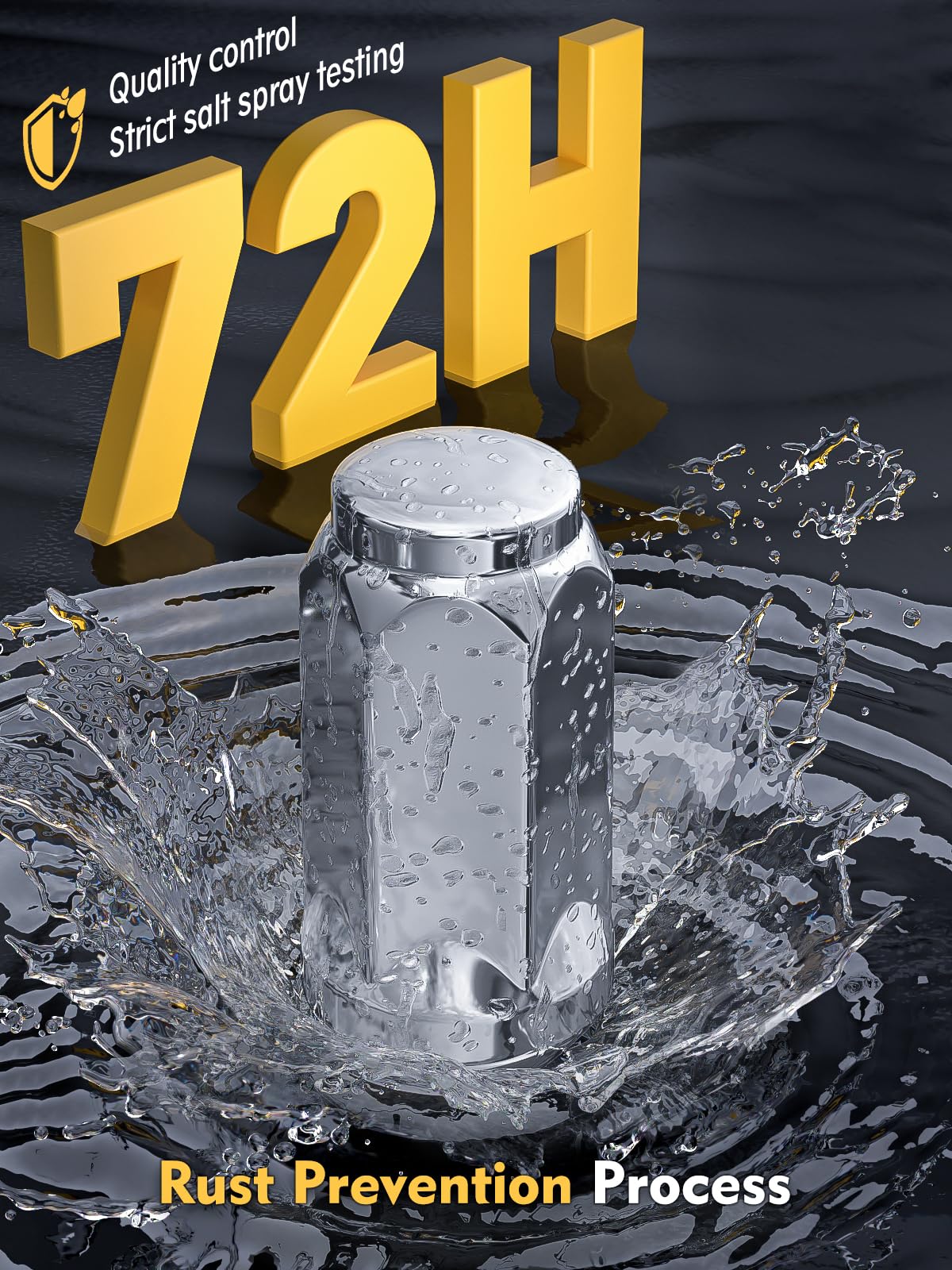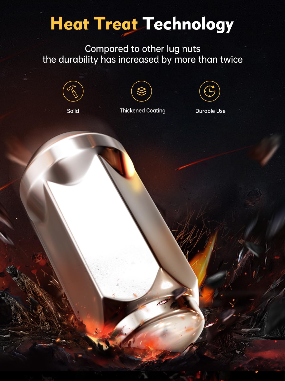 Q: How are MIKKUPPA Lug Nuts made and what materials are used?A: MIKKUPPA Lug Nuts are constructed from cold forged, heat-treated steel for superior strength and durability. They are triple chrome plated with copper, nickel, and chrome for enhanced corrosion resistance and aesthetics.