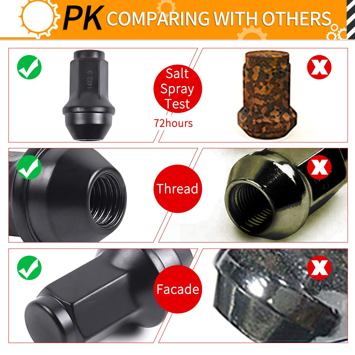Q: What features make MIKKUPPA lug nuts different from others on the market?A: MIKKUPPA lug nuts feature a one-piece OEM style design that provides a safer and more reliable closed end nut compared to traditional two-piece designs. They are also treated for anti-rusting and anti-stripping, ensuring longevity and aesthetic appeal.