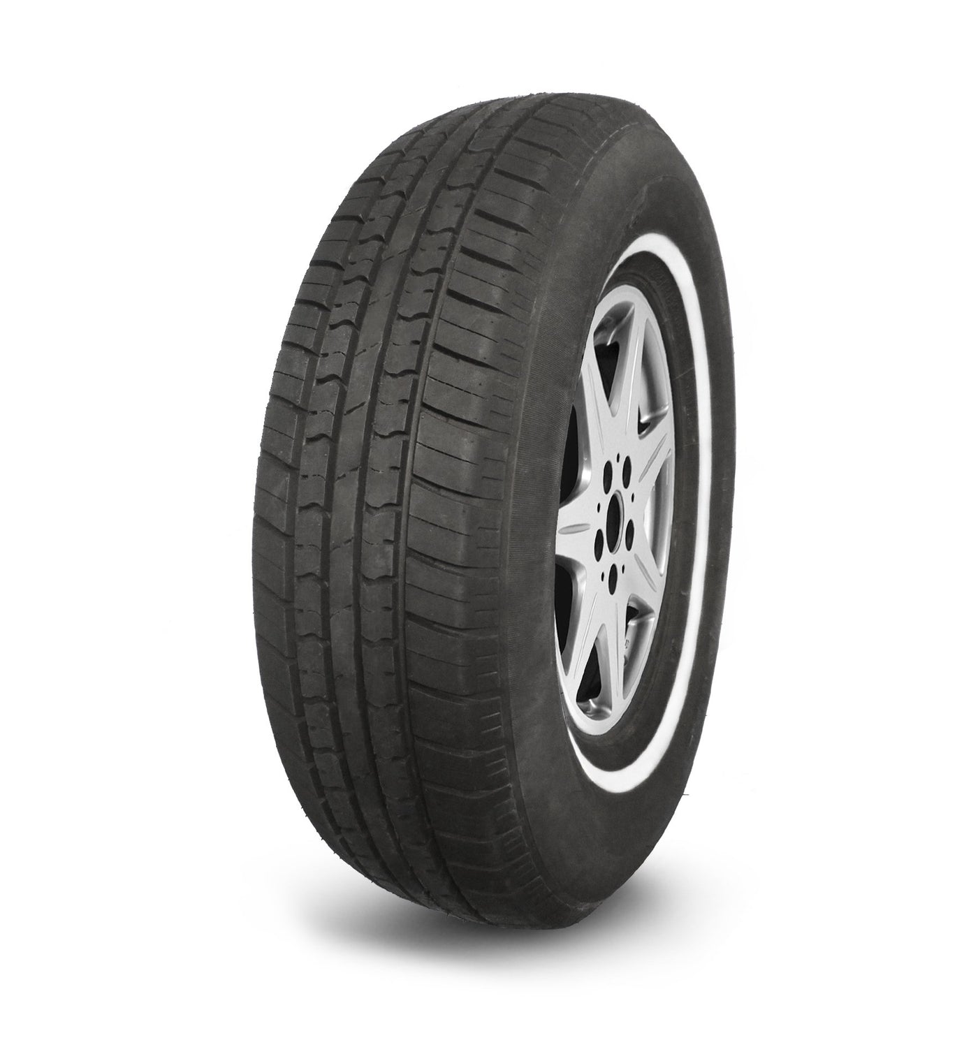 The MS775 is a modern tire designed for a variety of vehicles. With white wall and black side wall options, this versatile tire looks great taking the scenic path, cruising around town, or pulling up at the local drive-in. Circumferential interlocking tread blocks provide stability and traction while the open shoulder grooves aid in expelling water for a smooth and pleasant ride.