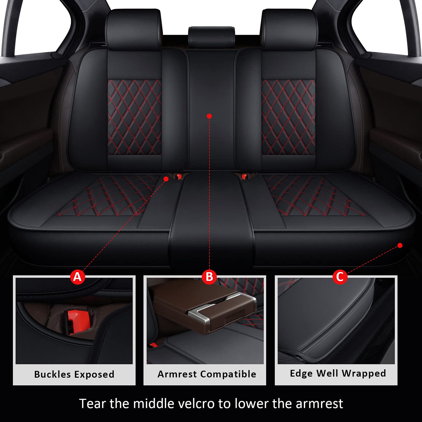 Q: What material are the seat covers made from?A: The MIROZO seat covers are made from high-quality faux leather, which is breathable, waterproof, and comfortable to touch. This material is designed to be sweat-absorbent and easy to clean, making it ideal for everyday use.