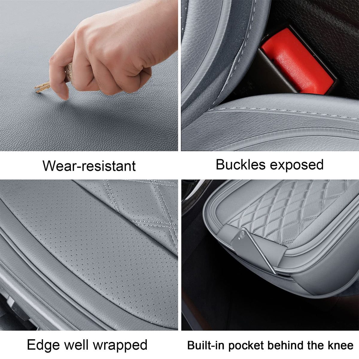What's in the Package? 1. 2 x front seat covers + 2 covers for front headrests. 2. Adjustable rear seat covers (full set only). 3. Hardware bag with steel hooks and round plates for mounting. 4. Installation Instruction.