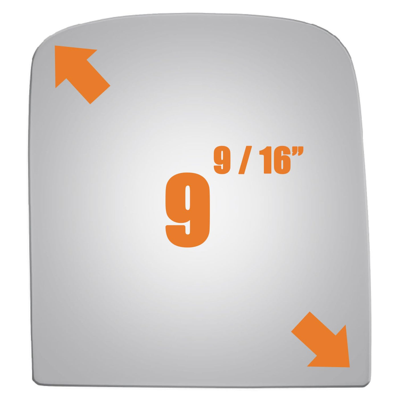 Q: How can I ensure the right fit for my vehicle’s mirror glass?A: To ensure the right fit, measure your existing mirror glass diagonally from the top corner to the opposite bottom corner. This mirror glass measures 9 9/16 inches diagonally. Comparing this measurement with your current mirror will help you confirm compatibility.