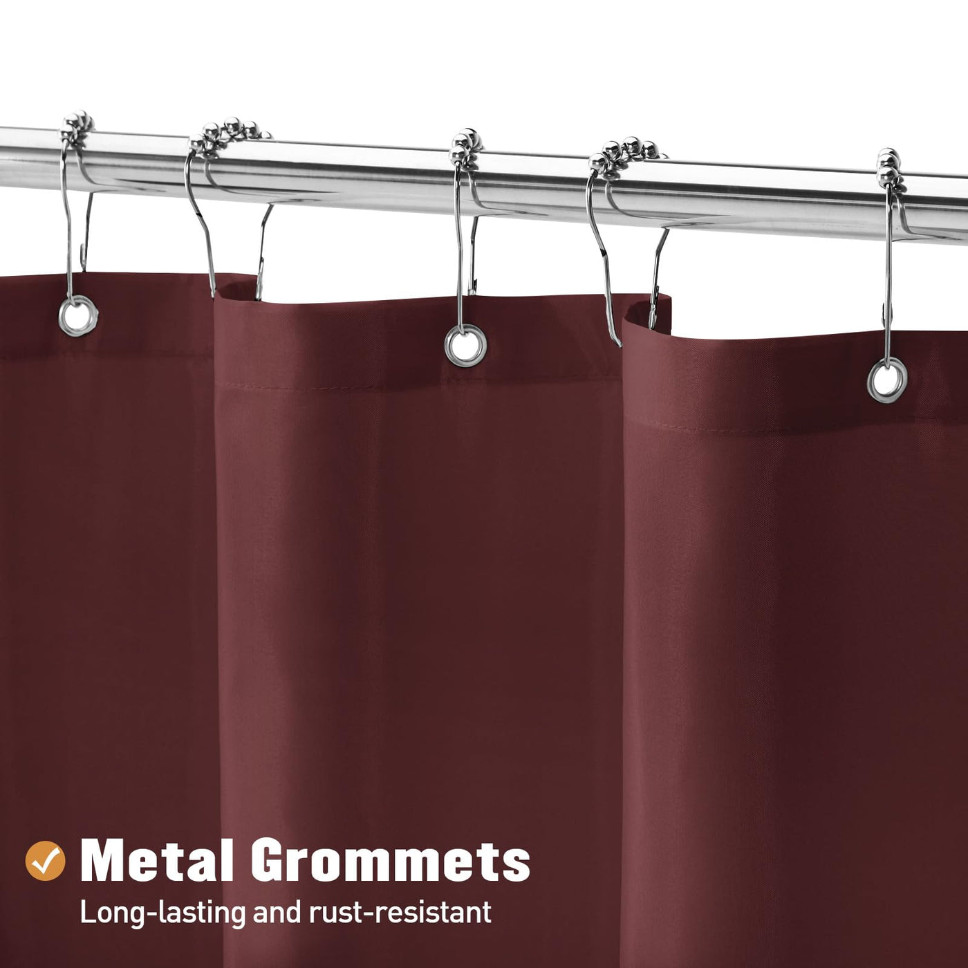 Mitovilla Extra Long Shower Curtain Liner - 72 X 84 Inches, Burgundy Shower Liner Fabric With Plastic Hooks, Washable Bath Curtain Liner