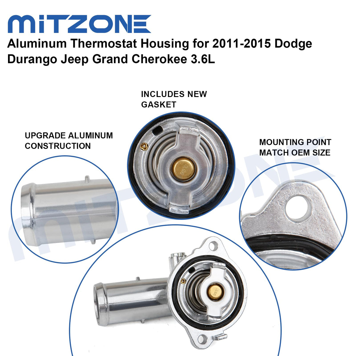 MITZONE Upgrade Aluminium Thermostat Housing Assembly Compatible with Dodge Durango Grand Cherokee 2011-2015 Wrangler JK 2012-20
