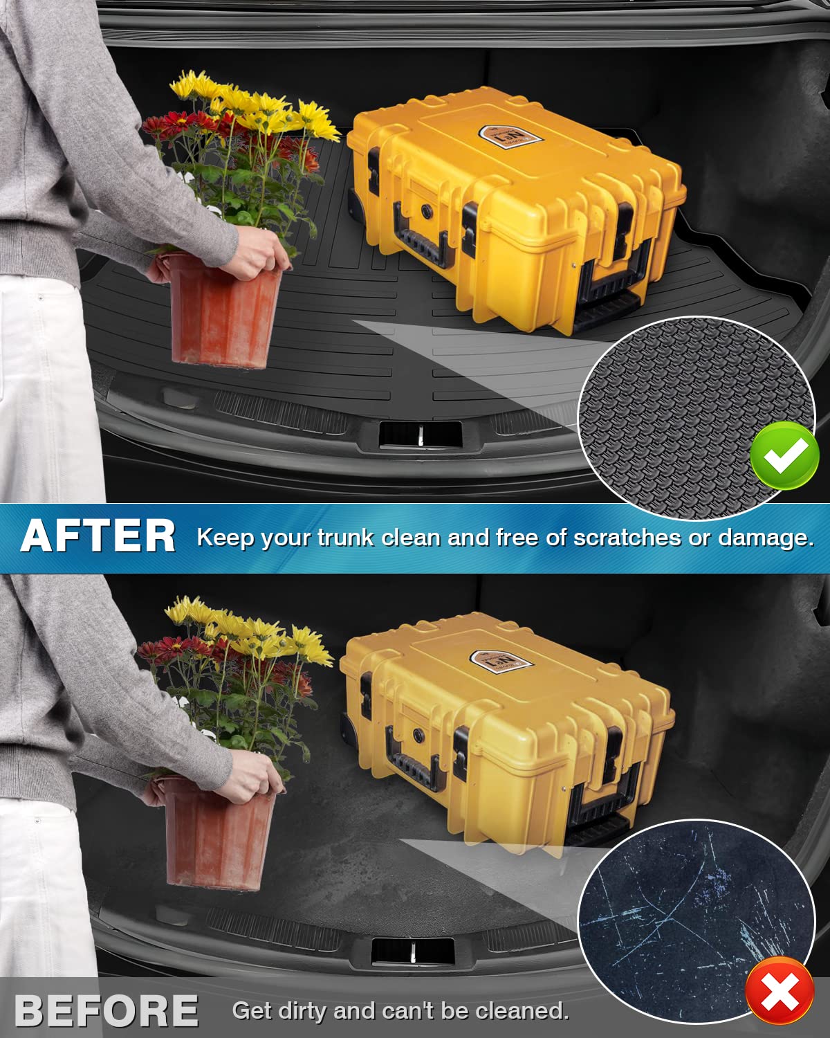 3D | How Our Brand Make Perfect Fit Floor & Cargo Liners -- Our Cargo Liner prevents stains or mess of any kind from harming your cargo area -- Boasts an innovative and unique structure. -- All weather protection against Snow, Mud, Sand, Salt Water and More! -- Digitized 3D Vehicle-specific design is precision-measured to exact cabin specifications(We're talking about less than 1mm gap). -- Mats not only repel stains and water permeation, but offer a Longevity use. -- Anti-skid backing keeps them in place without damaging your original carpet. -- Your 3D Trunk Liners are supported by a 3-year warranty. -- Durable, non-toxic and odorless, textured surface for a refined appearance and ultimate interior protection. Package included: 1* Cargo liner for 2013-2020 Ford Fusion S SE Titanium,2017-2018 Ford Fusion Platinum,2017-2020 Ford Fusion Sport. Notice:The liner may is deformed and has a large crease in the middle from the packing and shipping (folded in the middle), but was easily resolved. You just left the liner on driveway in the sun for 30 minutes and it returned to the original shape.