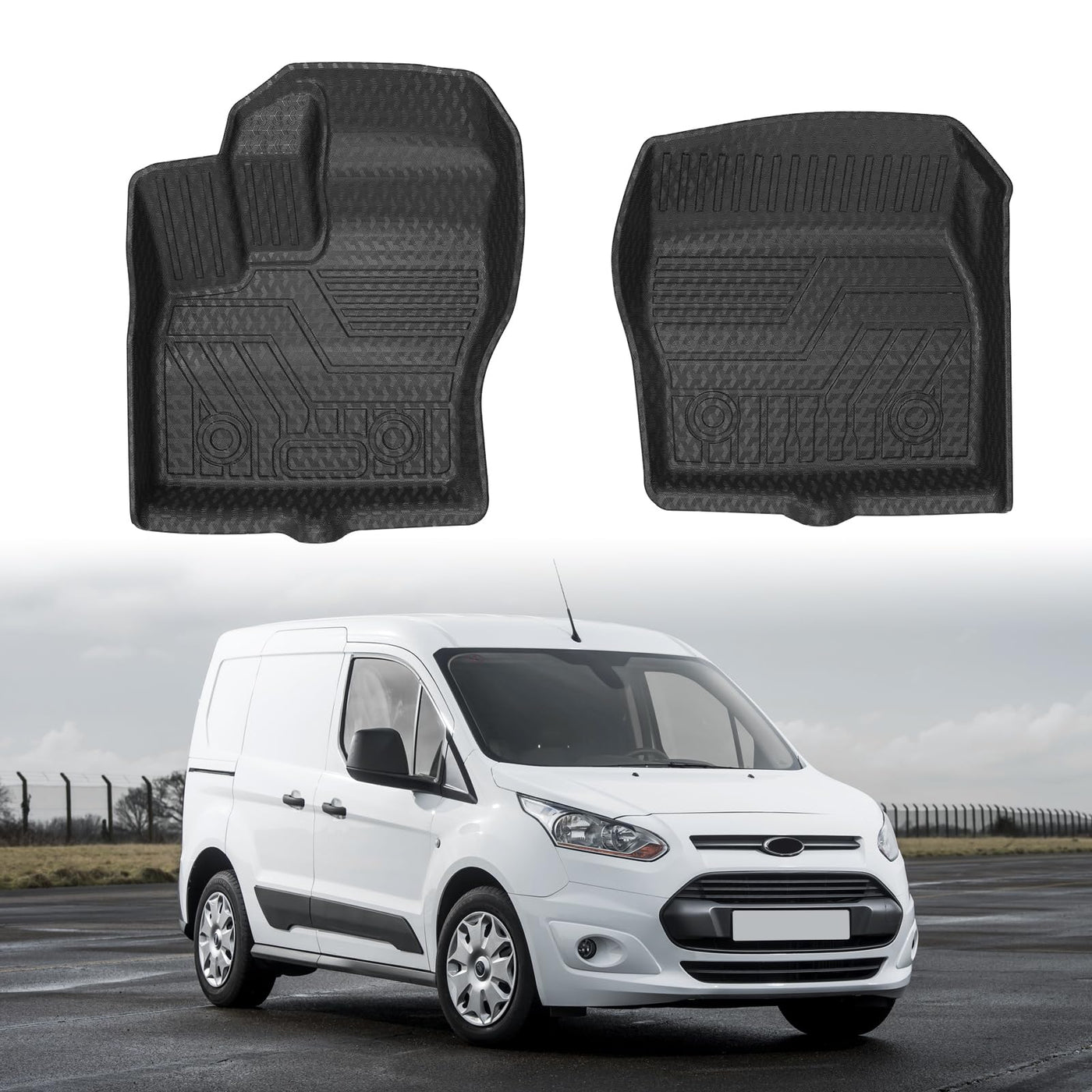 Custom Fit for Ford Transit Connect: Floor liners are compatible with 2014-2021 Ford Transit Connect with Vinyl Flooring and Floor Posts Only. | All Weather & Safe TPE Material: Floor mats are made of TPE materials featuring waterproof, durable, wear-resistant, non-slip and odorless. High tensity and safe TPE material keeps its flexibility in all season while still offering an excellent feel and extreme wear resistance. | Non-slip & Trap Debris: Textured, skid-resistant surfacing floor mats ensure driving safety. The floor liners are also designed with unique channels to effectively trap sand, water, mud, dirt, rain, muck, and any other mess. Keep your car clean and dry. | Raised Edge All Round: Digital 3D laser scanning makes these mats perfectly compatible with your vehicle. The floor liners have raised edges all the way around to stop liquids and debris from reaching your original floor. Make sure the mess stays on the floor liner and off your original clean floorboard. | Super Easy to Clean: The waterproof floor mats can be simply cleaned by wiping, hosing off, or using soap and water.