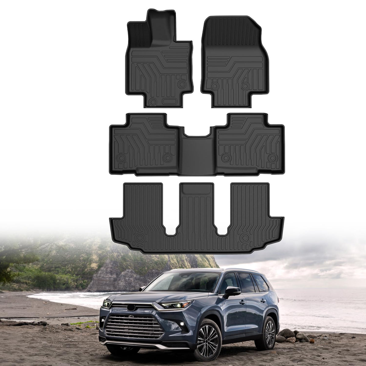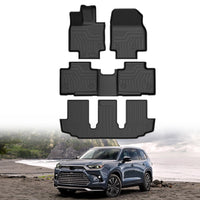 Floor Mats for Toyota Highlander: Floor liners are compatible with 2020 2021 2022 2023 2024 2025 Toyota Highlander Fits W/ 2nd Row Bench or Bucket Seats W/Center Console. Does Not Fit Hybrid Models. | Durable & Safe TPE Material: Floor mats are made of TPE materials featuring waterproof, durable, wear-resistant, non-slip and odorless. High tensity and safe TPE material keeps its flexibility in all season while still offering an excellent feel and extreme wear resistance. | Raised Edge Protection: The floor liners have a raised lip all the way around to prevent liquids and debris from reaching your original floor. Make sure the mess stays on the liner and off your original clean carpet. | All Weather Guard: Our floor mats feature -40