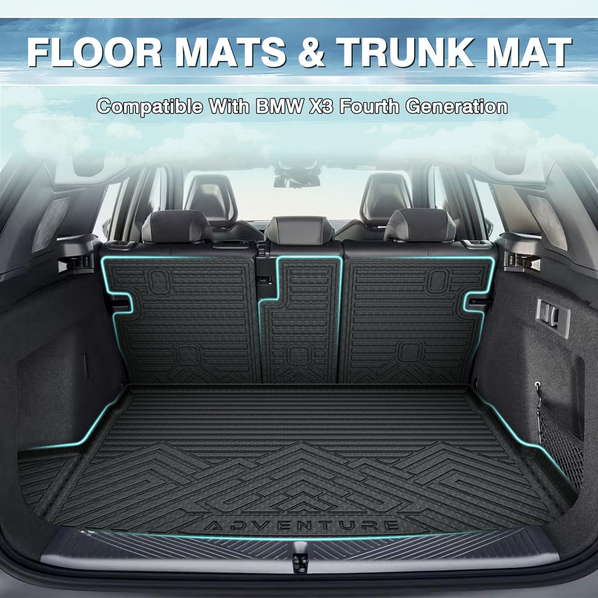 Mixsuper Floor Mats for B-M-W X3 2025 2026, Cargo Mat Backrest Mat for X3, All Weather 2 Row Floor Liners and Trunk Mat Accessor