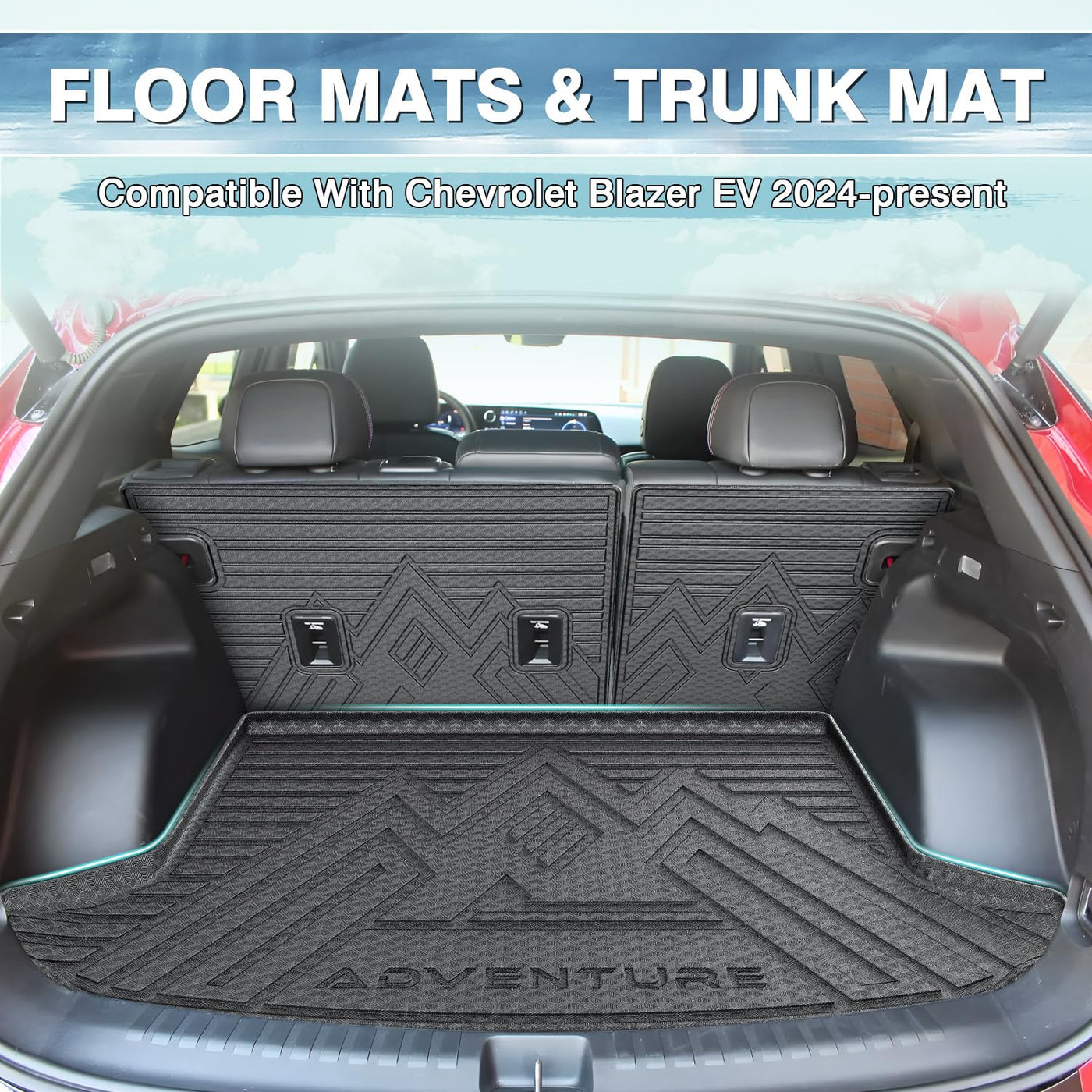Mixsuper Floor Mats for Chevrolet Blazer EV 2024, Cargo Mat Backrest Mats for Blazer, All Weather Trunk Mat and 2 Row Floor Line