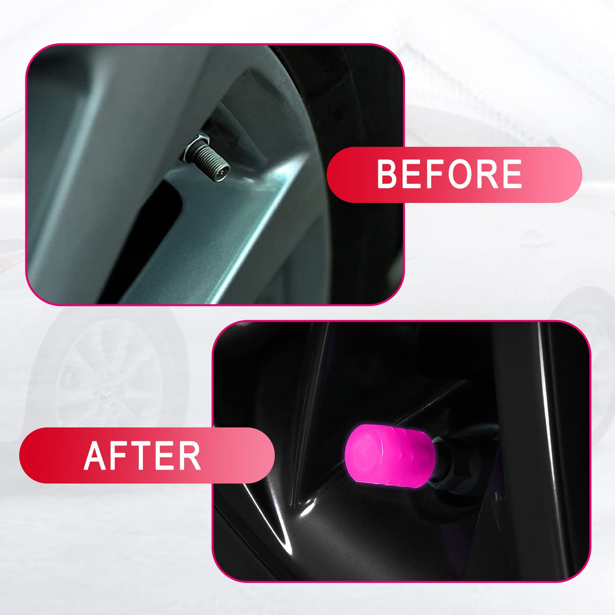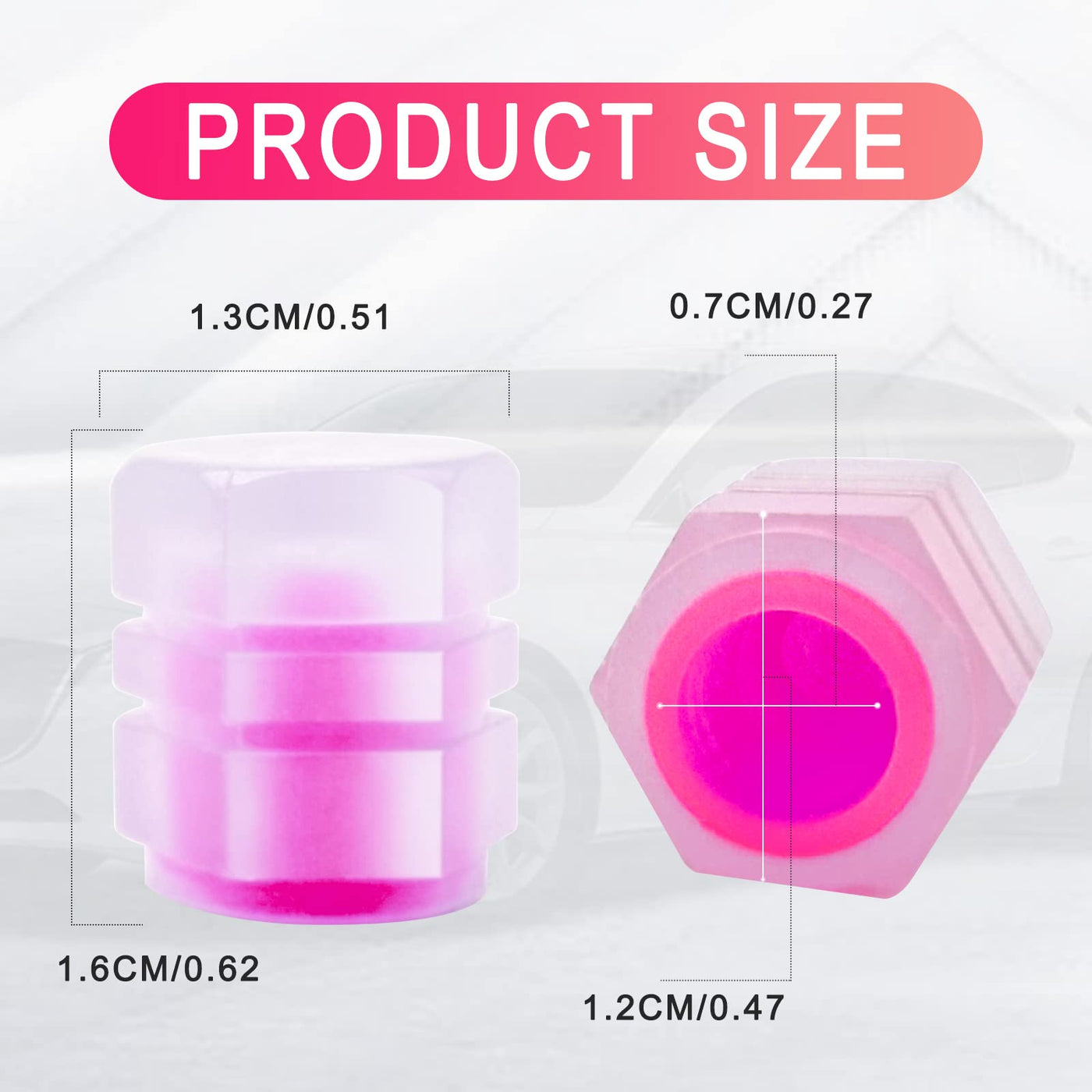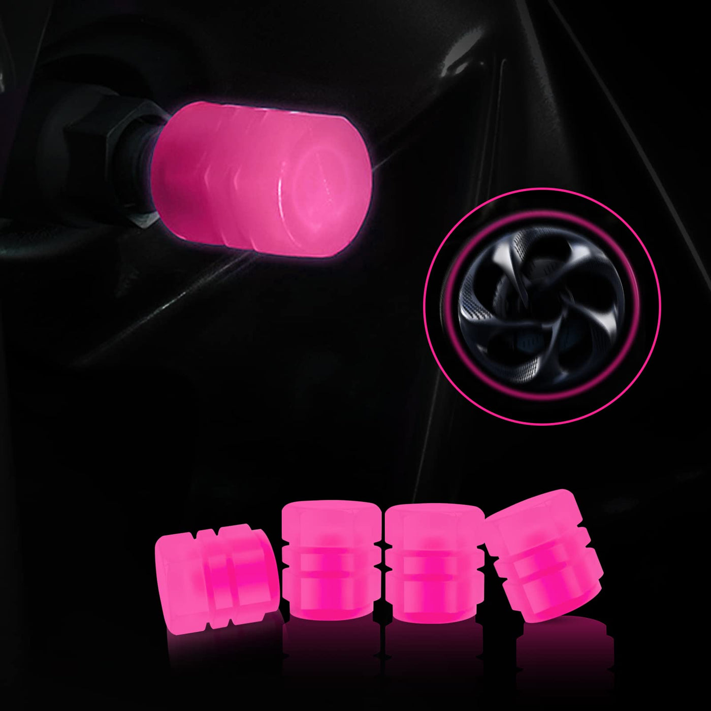 Miytsya 4 Pcs Luminous Wheels Cap Tire Valve Stem For Car, Glow Luminous At Night, Air Caps Cover Fluorescent, Illuminated Auto Car Wheel Valve Stem Caps Cover For Car, Suv, Motorcycles, Truck, Vehicle (Pink)