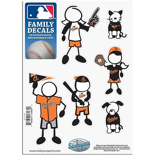 Q: How many decals are included in the set?A: The set includes a total of 6 individual family-themed decals, each featuring the Baltimore Orioles team logo.
