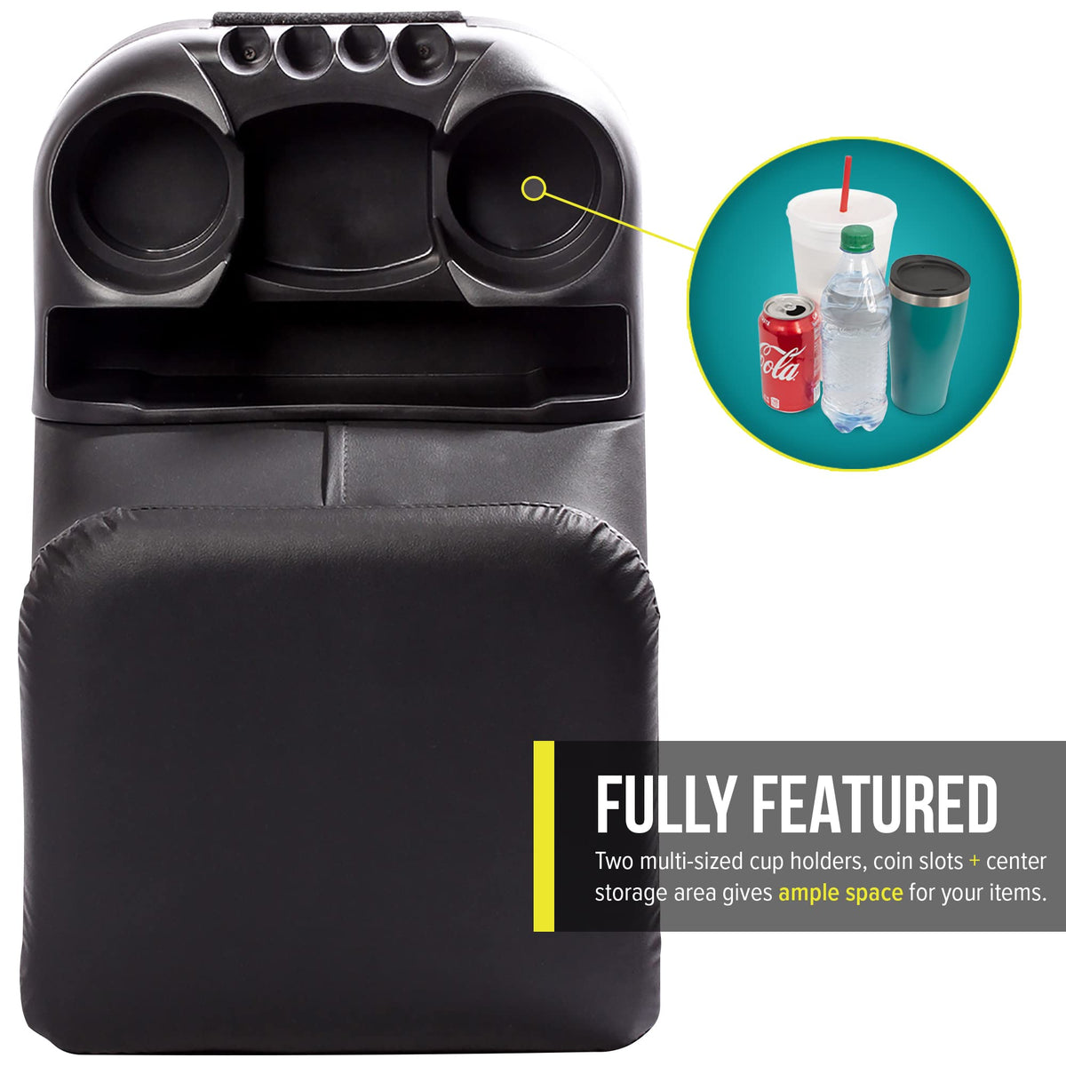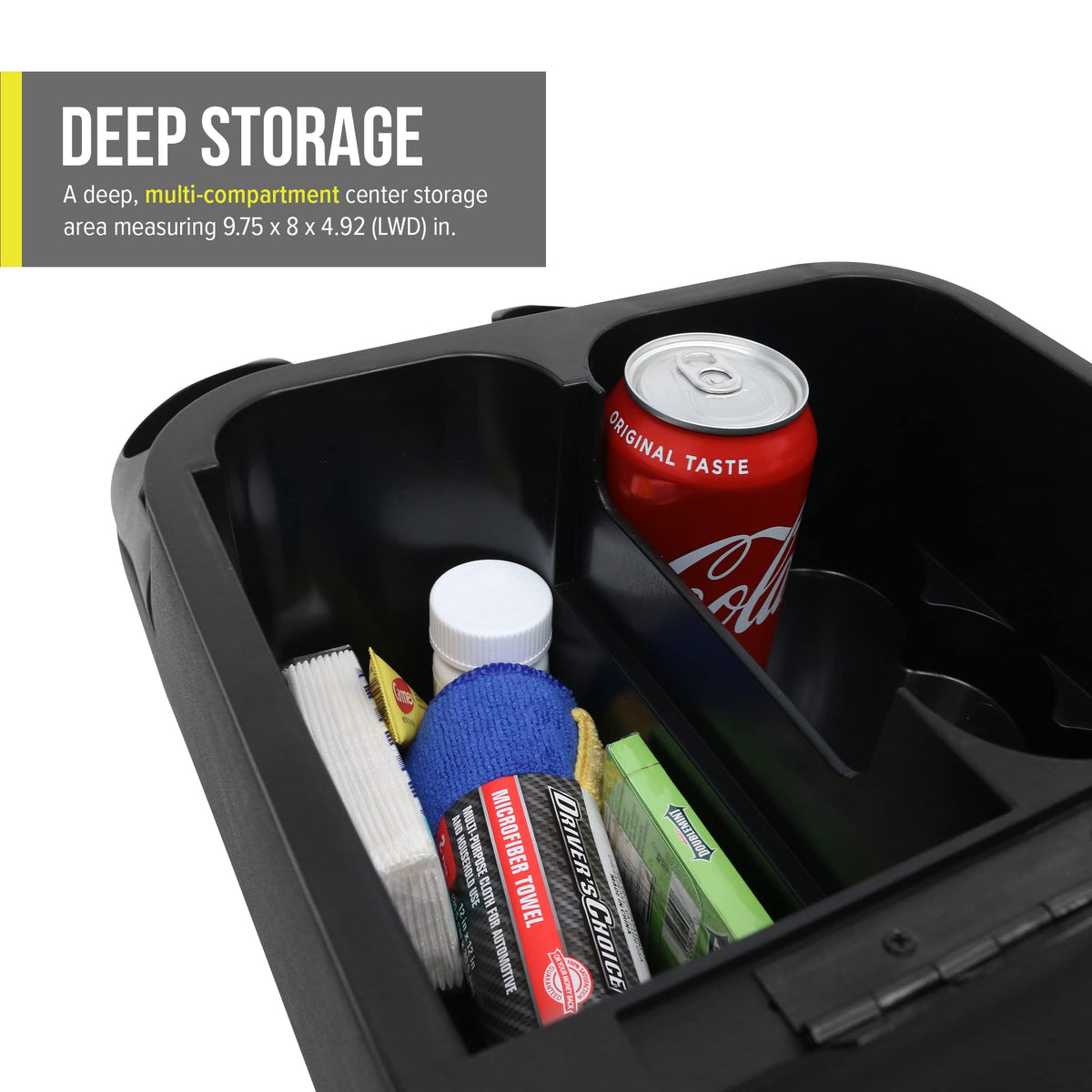 Q: What features make the Moblorg Center Console stand out from other organizers?A: The Moblorg Center Console features extra deep storage compartments and a padded ergonomic armrest, providing both comfort and functionality, making it a market leader in vehicle organization.