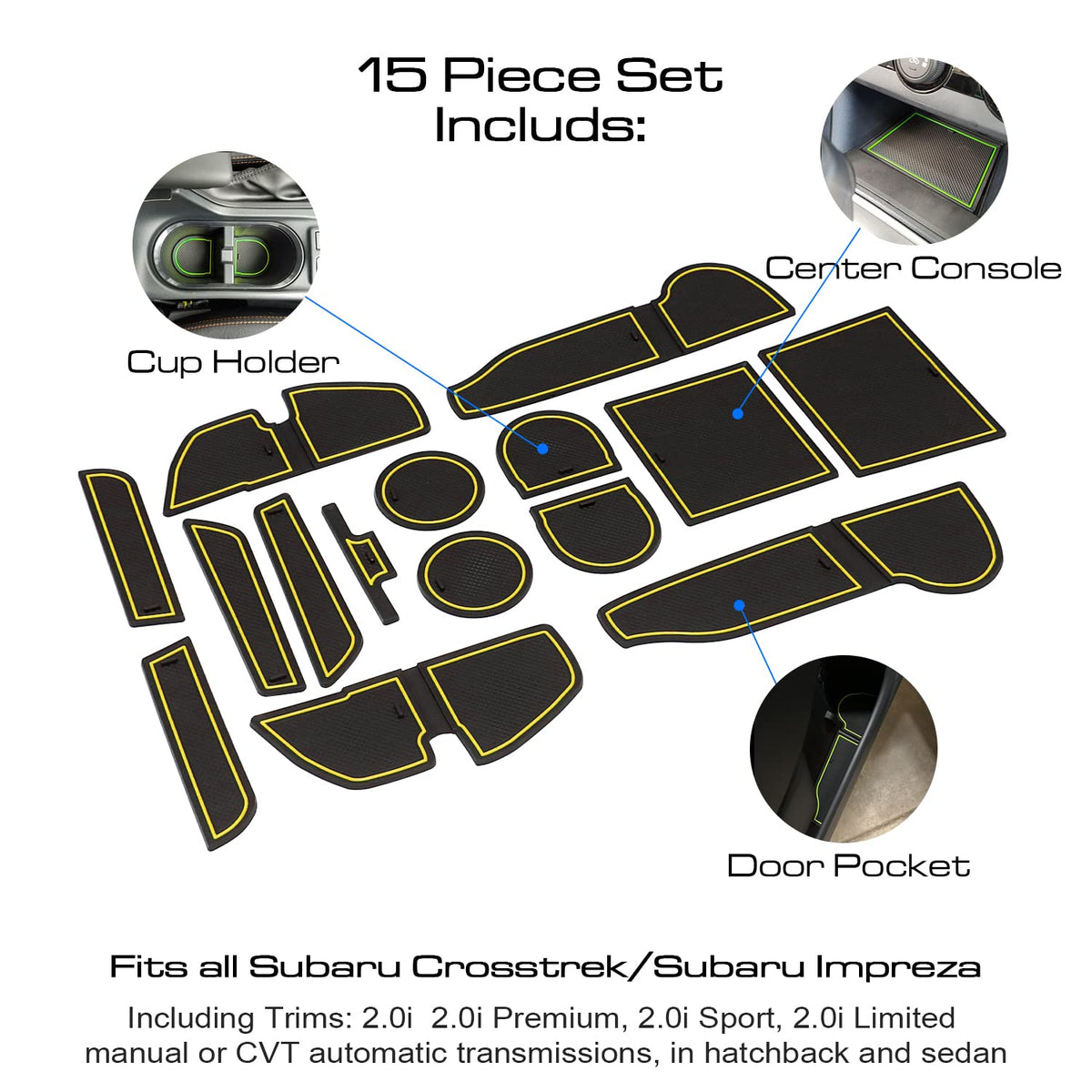 Mochent Cup Holder Insert For Subaru Crosstrek 2023 2022 2021 2020 2019 2018 And For Subaru Impreza 2017-2023 Center Console Mat Non-Slip Door Pocket Liners Interior Accessories (Yellow)