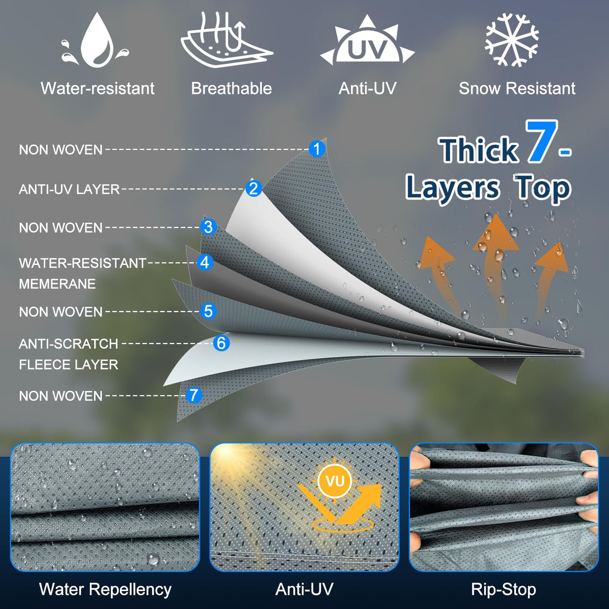 Mofeez Travel Trailer Rv Cover, Extra-Thick Upgraded 7 Layers For Camper Cover 22-24 Ft Travel Trailer Windproof Waterproof Rip-