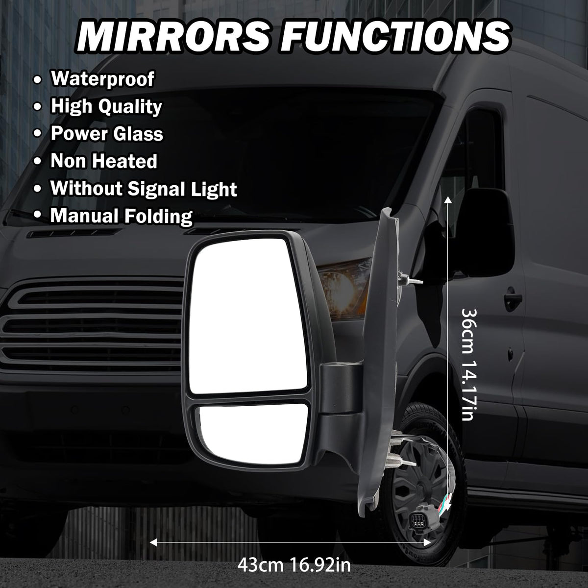 Mofoap Driver Side Mirror,Mirror Assembly Compatible With 2015-2025 Ford Transit 150 250 350 350 Hd,Transit Tow Power Glass,Towi