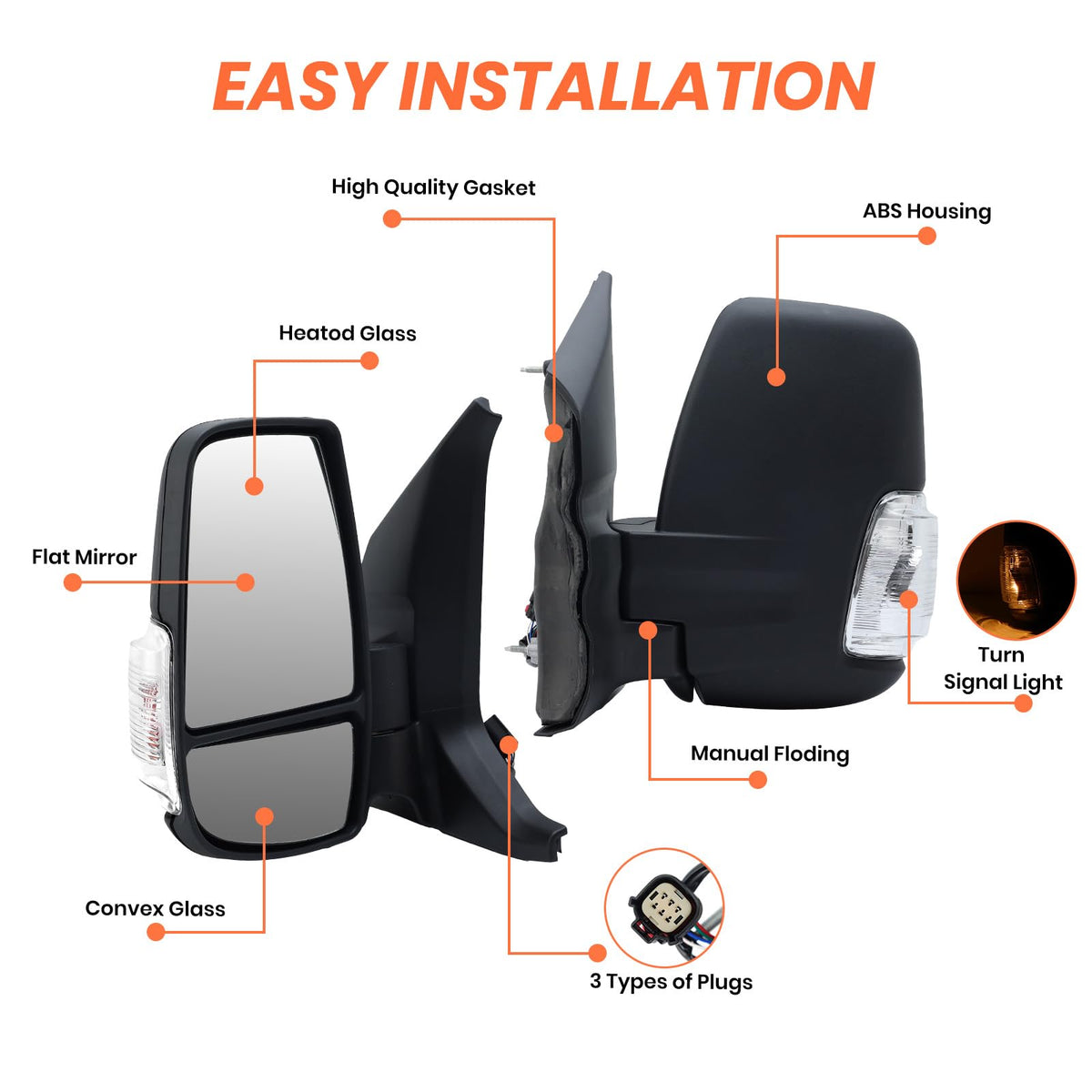 Mofoap Driver Side Mirror,Mirror Compatible With 2015-2021 Ford Transit 150 250 350 350 Hd,Transit Side View Mirror With Power G