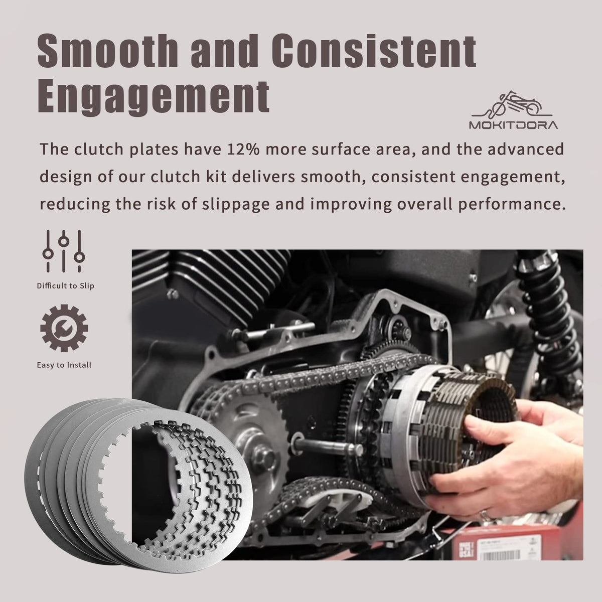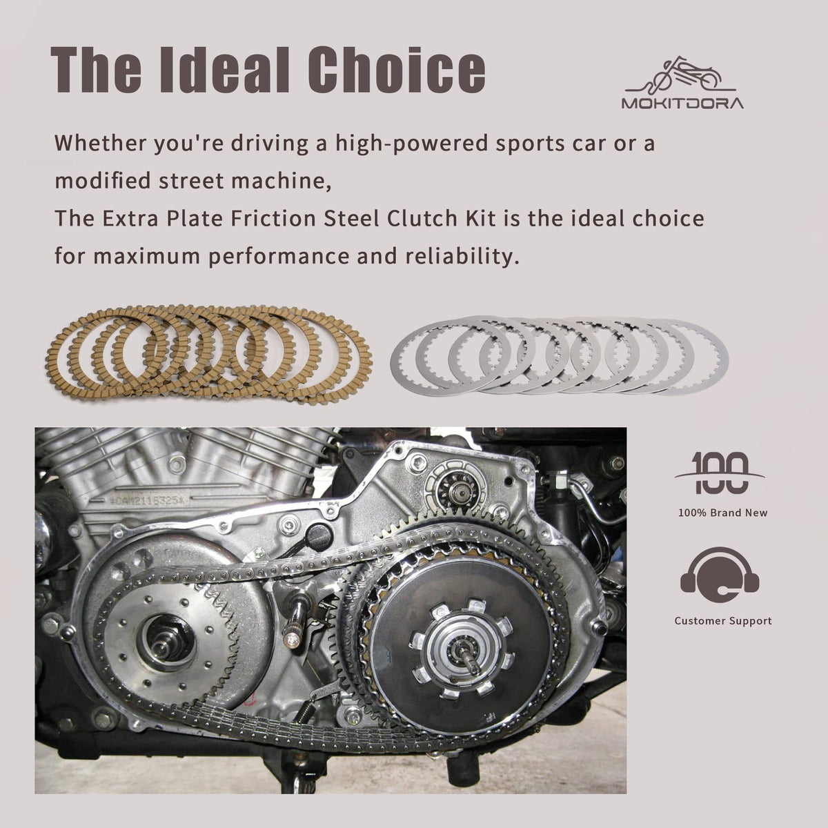 Mokitdora Extra Plate Friction Steel Clutch Kit Replace Of P/N 37911-90, 307-30-10011, Fit For Harley Sportster 1991-2017, Big Twin Dyna, Fxr, Softail 1990-1997, Buell All Models 1991-2002