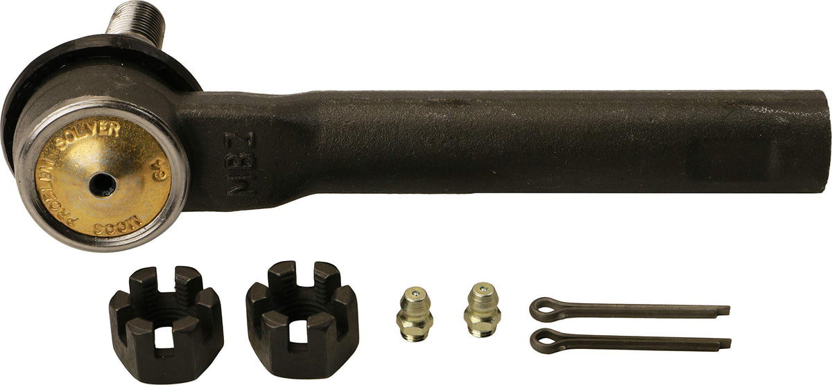 Q: What materials are used in the construction of the MOOG ES800404?A: The MOOG ES800404 Tie Rod End is made with high-quality materials, including a rubber component to enhance durability and performance, while also featuring heat-processed ball studs that exceed original equipment (OE) requirements.