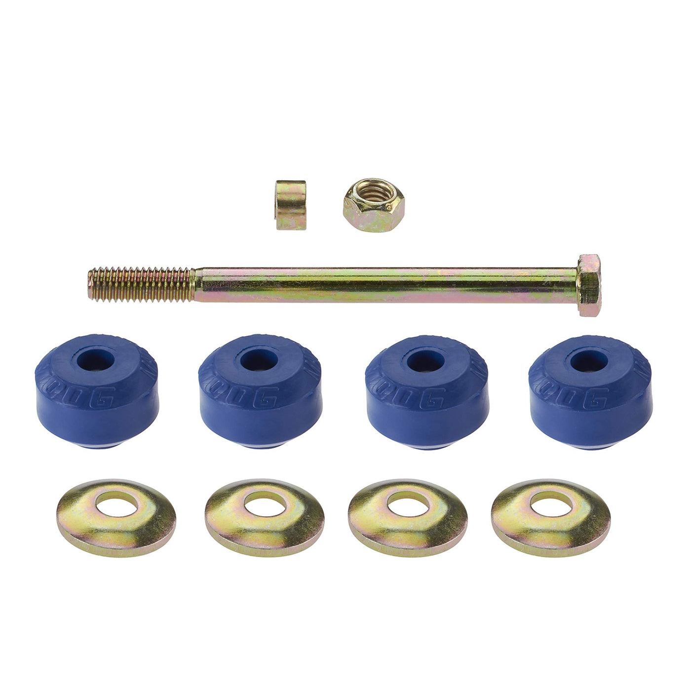 Q: What materials are used in the MOOG Stabilizer Bar Link Kit?A: The kit features thermoplastic bushings that are resistant to heat, wear, salt, road grime, and oils, providing durability and longevity.