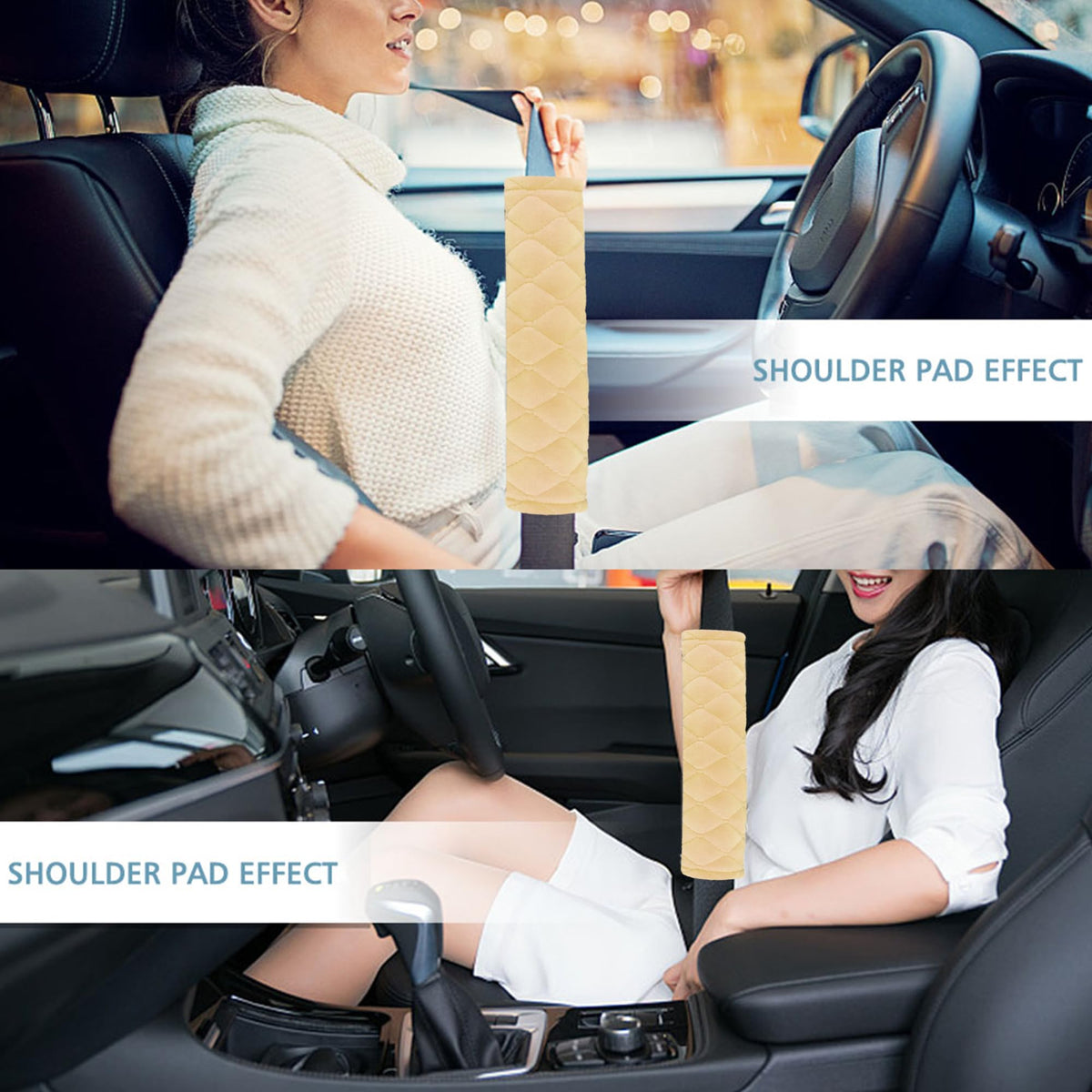Moonet Auto Seat Belt Shoulder Protector Harness Pad, Soft Skin-Friendly Universal Seatbelt Cover For More Comfortable Driving, Multipurpose For Handbag Carmera Backpack Straps,2Pc(Light Khaki