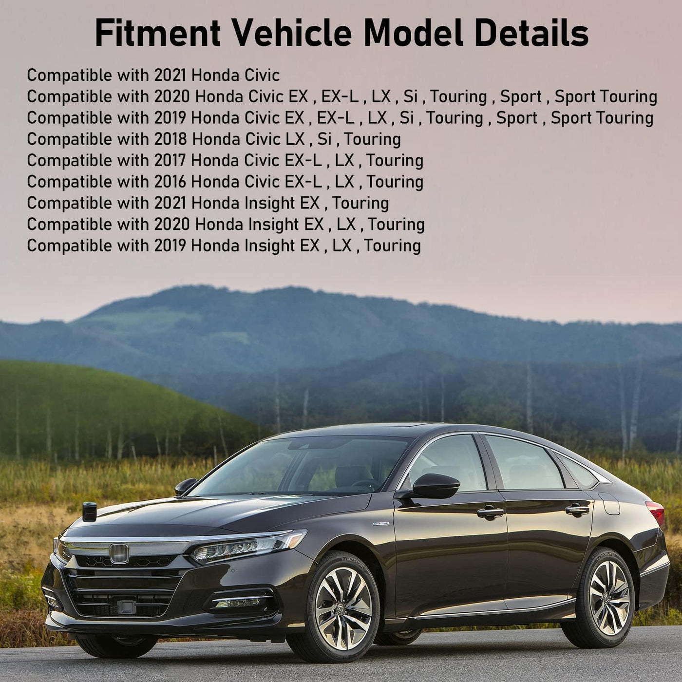 Product Introduction:Moonlinks Driver Side Rearview Mirror Cover Cap Compatible with 2016 2017 2018 2019 2020 2021 Honda Civic/2019 2020 2021 Honda Insight,Direct Side Mirror Cover Replacement for left side,glossy blackWing Mirror Cover for Civic/InsightFitment:Compatible with 2016 2017 2018 2019 2020 2021 Honda Civic LX , Touring Sideview Mirror CoverCompatible with 2016 2017 2019 2020 2021 Honda Civic EX-L Sideview Mirror CoverCompatible with 2018 2019 2020 Honda Civic Si Sideview Mirror CoverCompatible with 2019 2020 2021 Honda Civic EX , Sport , Sport Touring Sideview Mirror CoverCompatible with 2019 2020 2021 Honda Insight EX , LX , Touring Sideview Mirror CoverProduct featuresMaterial: Premium ABS plasticColour: glossy blackPaintedQuantity:1 x Civic outside rearview mirrorProduct introduction:The Moonlinks Civic sideview mirror cap cover for left driver side is an actual replacement to direct replace which your driver side mirror scratched or aging one.Features::1.Durable and long service life.2.Perfect side wing mirror cap replacements for your original or damaged mirror cover.3.Firmly, not easy to fall off.4.Easy to installation.5.Dont need to match the original color and paint,when one of mirror covers breaks down.Note:1.The year and model only as reference,please double-check that if your side mirror upper cover is shape as the picture before you purchase.