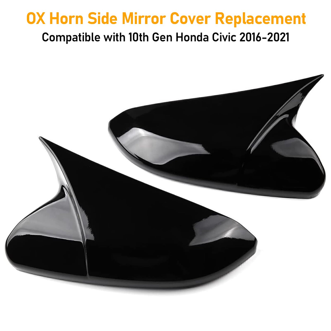 Moonlinks Compatible With 2016-2021 Honda Civic Side Ox Horn Mirror Cover Replacement, Glossy Black Lh & Rh Side Door Rearview M