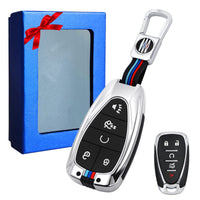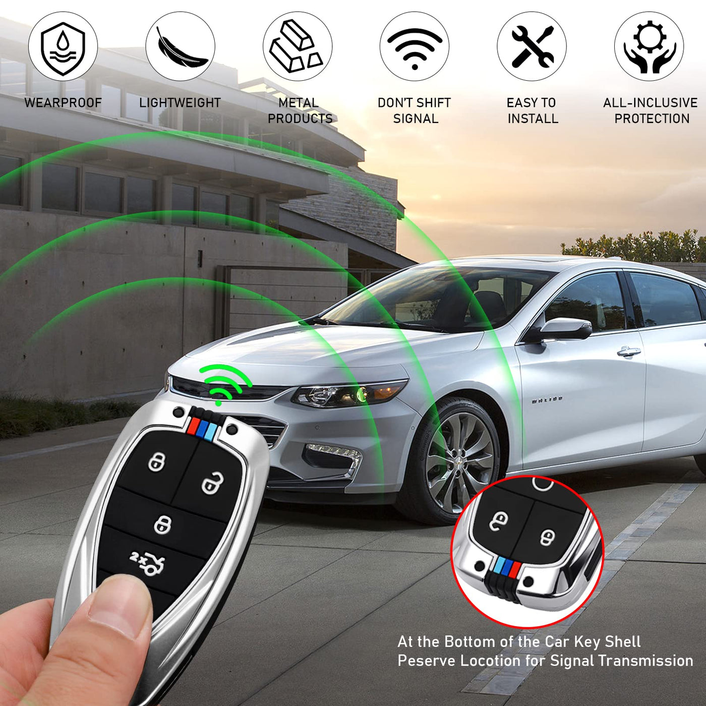 Moonlinks Key Fob Cover 5 Button Compatible With 2016-2022 Chevy Malibu Camaro Cruze Traverse Sonic Volt Bolt Equinox,Metal Silver Key Case & Silicone Key Cover With Keychain Key Protector Shell