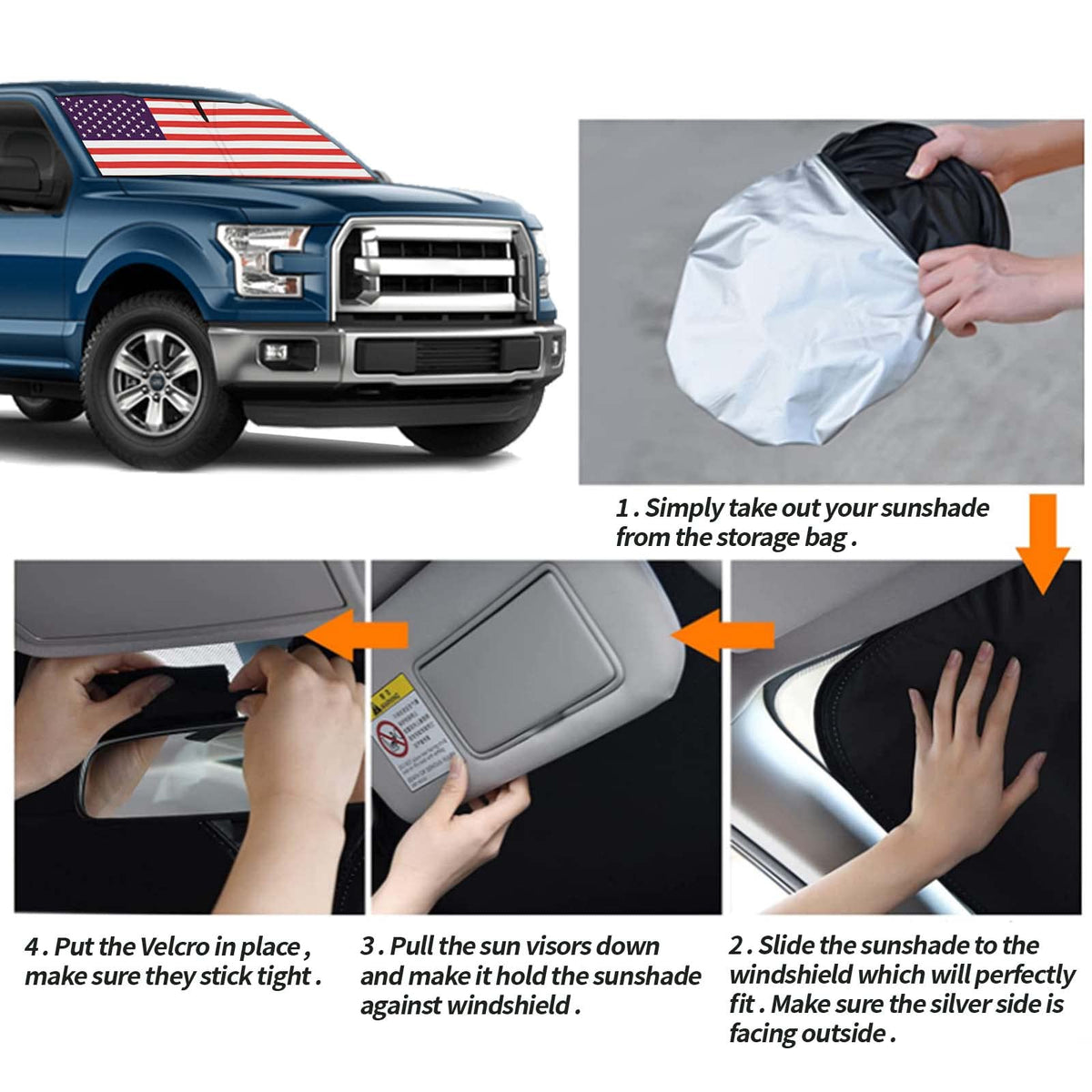Moricere Upgrade Windshield Sun Shade With Usa Flag For Ford F150 2015-2020, Foldable Windshield Sun Visor Blocks Uv Rays