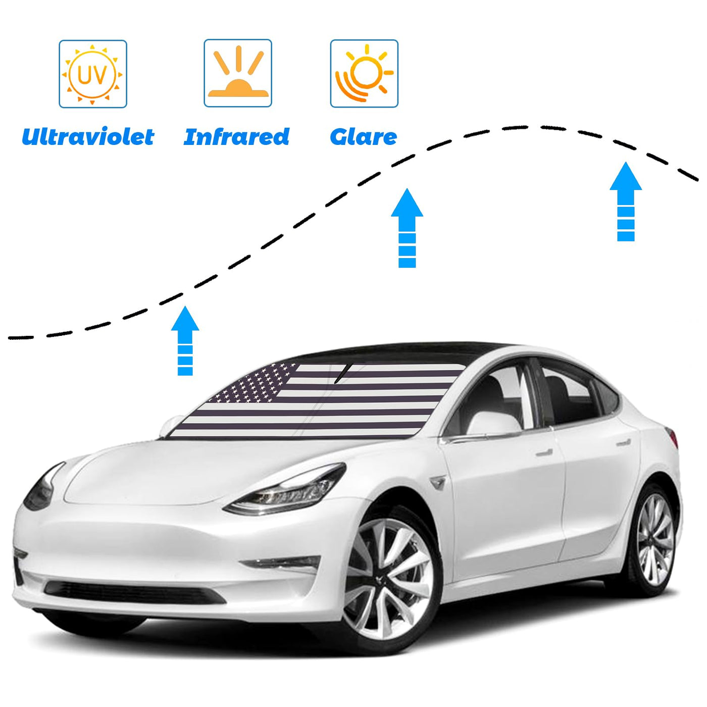 Moricere Upgrade Windshield Sun Shade With Usa Flag For Tesla Model 3 2016-2023, Foldable Windshield Sun Visor Blocks Uv Rays