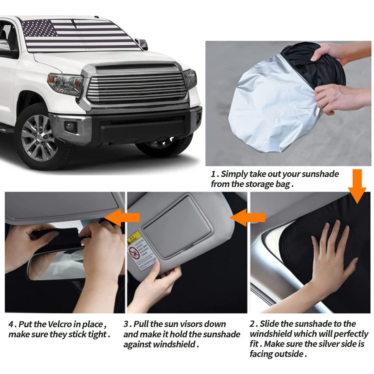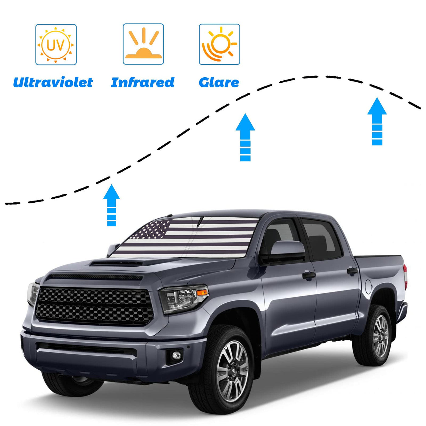 Moricere Upgrade Windshield Sun Shade With Usa Flag For Toyota Tundra 2007-2021, Foldable Windshield Sun Visor Blocks Uv Rays