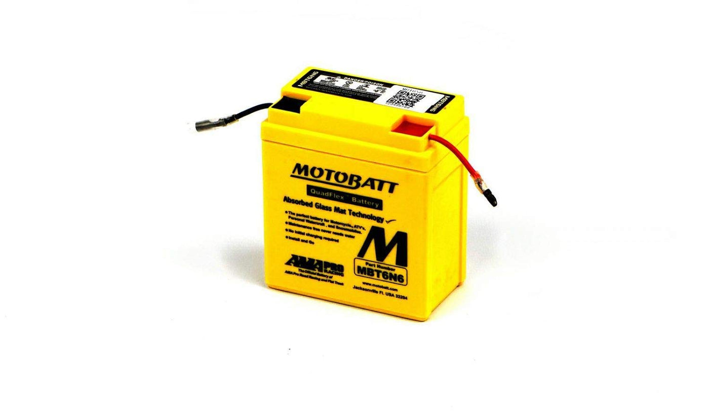 Q: What maintenance does the MotoBatt MBT6N6 battery require?A: The MotoBatt MBT6N6 battery is maintenance-free and does not require regular checks for water levels, as it is factory sealed. However, it is advisable to periodically check the terminals for corrosion and ensure that the connections remain tight for optimal performance.