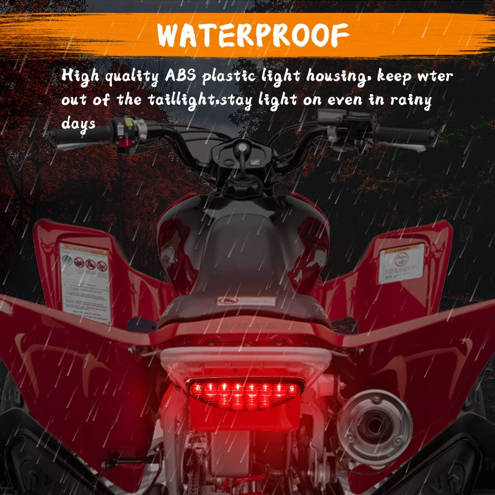 ?Compatibility?The Taillights Fit For All Atv, Utv With Replacement Part Number 33700-Hp1-601. Fits 2005-2007 Trx400Ex, 2006-2014 Trx450Er, 2004-2009 Trx450R, 2005-2006 Trx300Ex | ?3X Brighter Than Halogen Bulbs?Built In 12Smd Led Chips, 3X Brighter Than Halogen Bulbs, Greatly Improved Your Visibility Behind You While Riding At Night, Make Driving Safer At Night, Rainy Days And Any Extremely Weather Days. | ?Easy Installation?Plug And Play, Easy To Install. In-Line Socket Design For Easier Installation, No Cutting Or Modifications Needed, Just Remove The Old Taillights, And Install New Replacement. | ?Durable?Made Of High Quality Abs Plastic Material, Anti-Scratch, Water Proof, No Faded After Long Time Exposure; Equipped With Smd Led Chips, Prolong Life Service Time; Red Lens Identical To Stock Brake Lights. | ?What You Will Get?Including 1Pcs Atv Taillights. You Are Backed By 3-Month Warranty Since Order Purchase Date. Please Feel Free To Contact Us If You Have Any Questions. Solutions Will Be Offered Once Detail Is Confirmed.