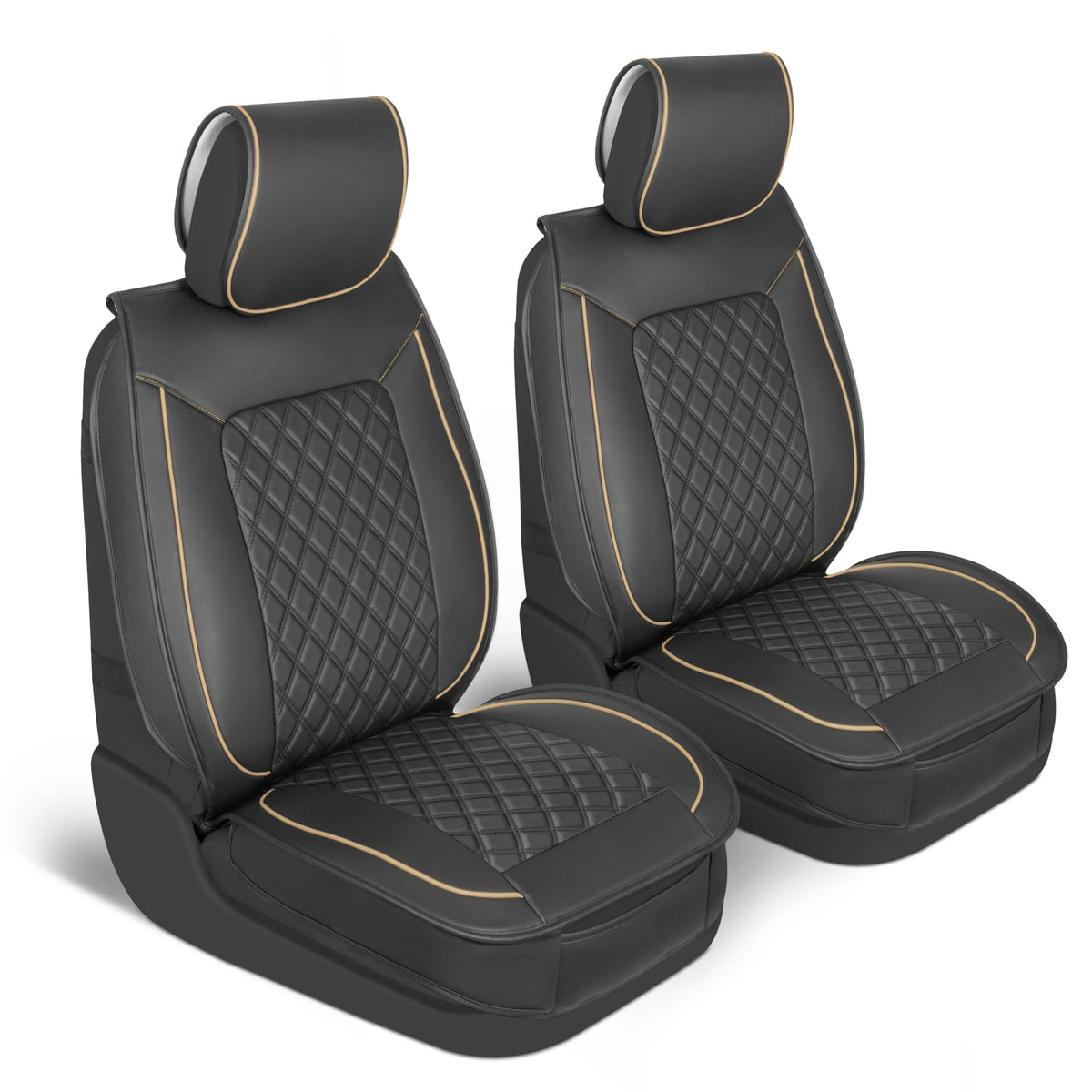 MotorBox Prestige Faux Leather Seat Covers for Cars - (2) Front Semi-Custom Fit Black & Beige Seat Covers for Trucks & SUV - Aut