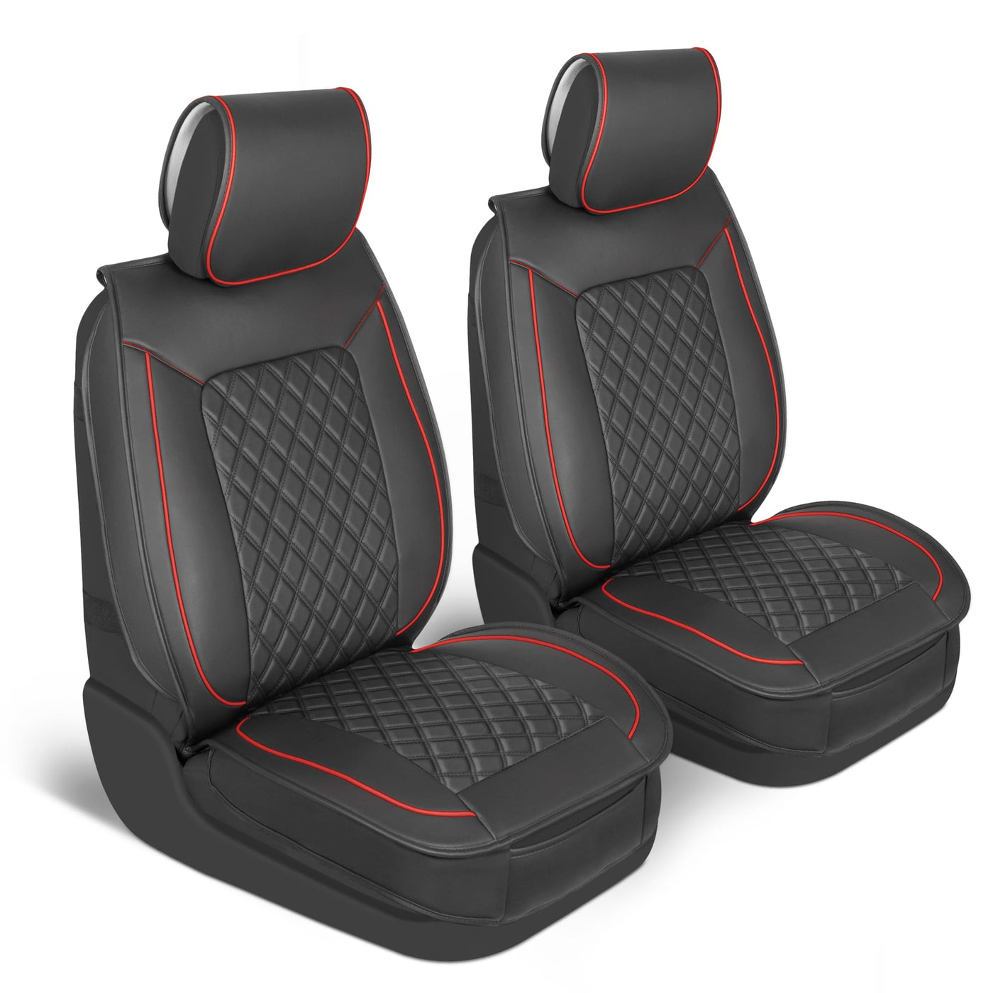 MotorBox Prestige Faux Leather Seat Covers for Cars - (2) Front Semi-Custom Fit Black & Red Seat Covers for Trucks & SUV - Autom