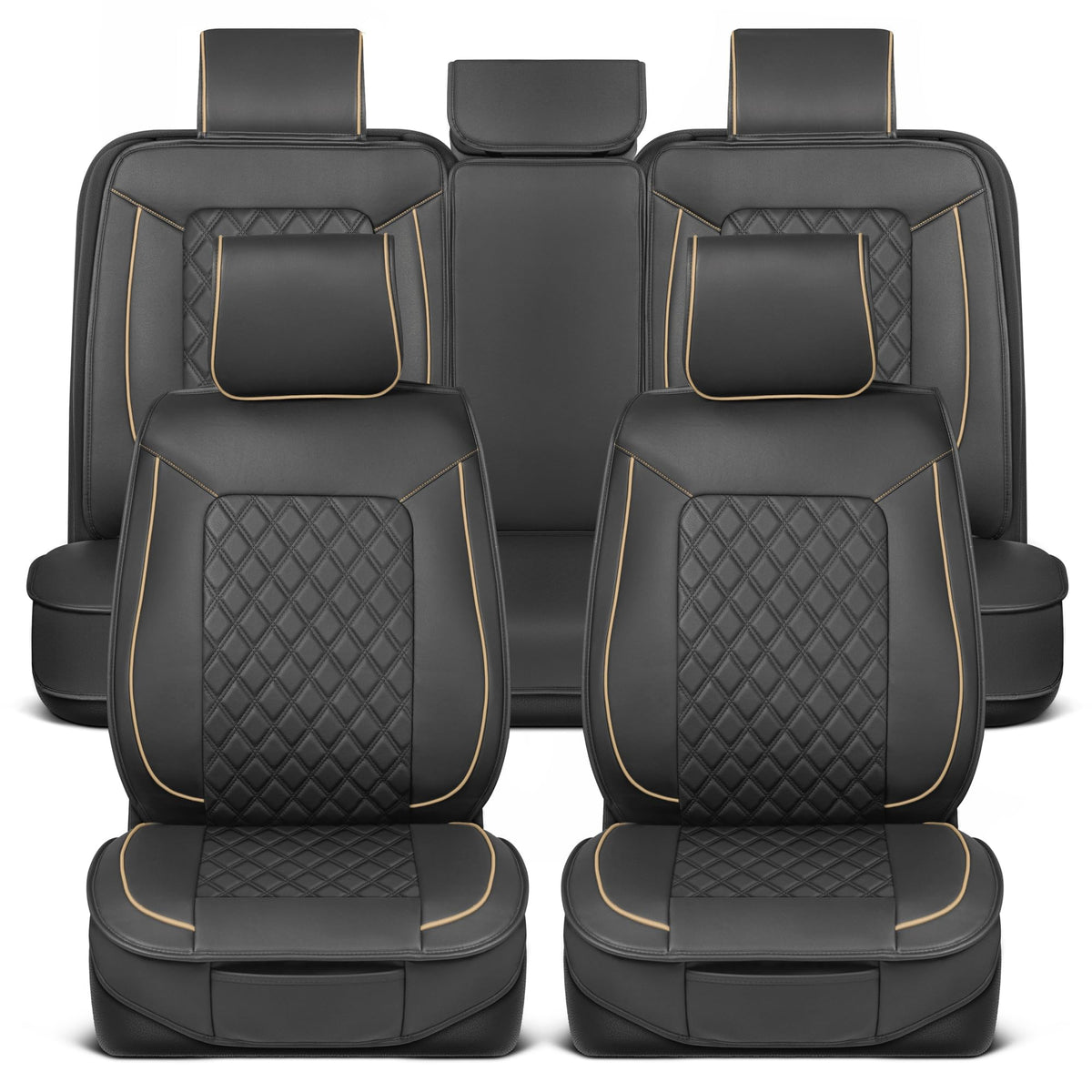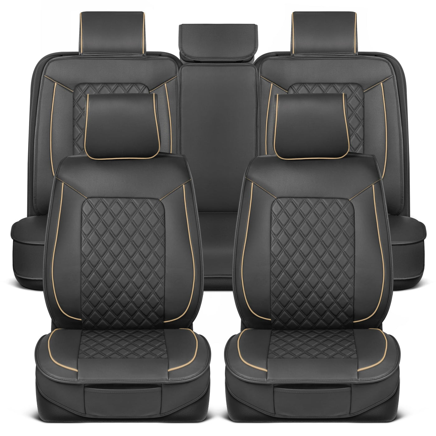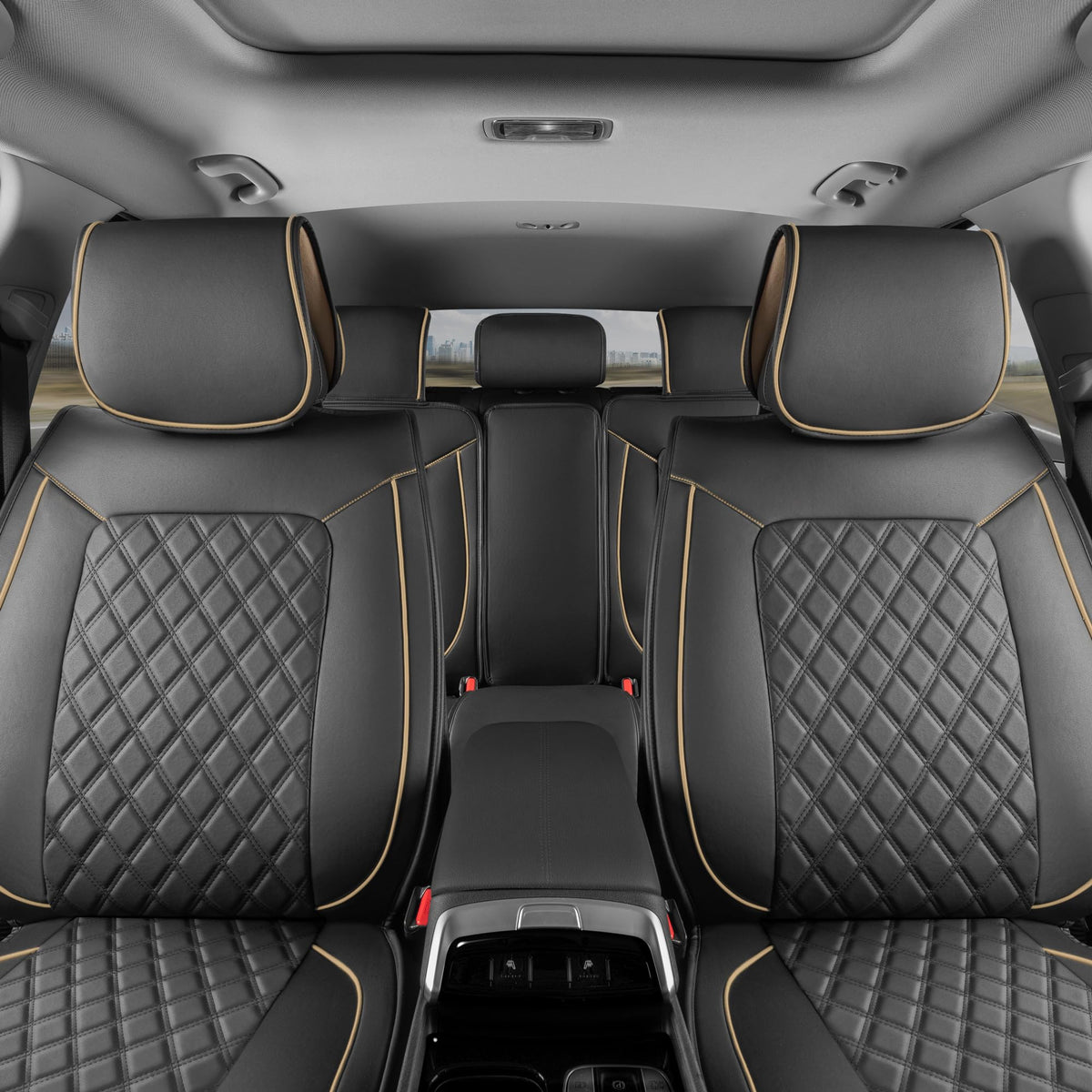 MotorBox Prestige Faux Leather Seat Covers - Semi-Custom Fit Car Seat Covers Full Set - Seat Covers for Trucks & SUV PU Leather