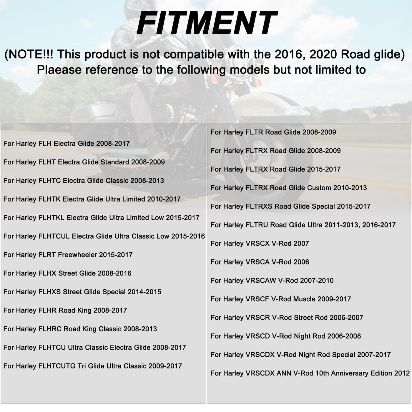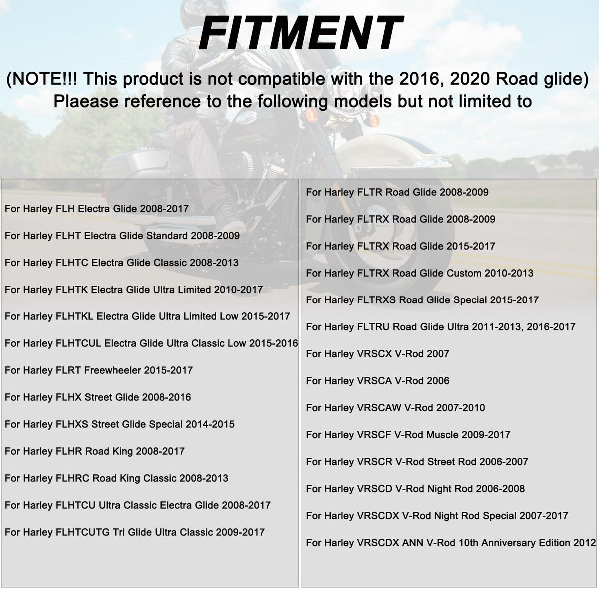 Specification Condition: 100% Brand New Material: CNC Aluminum No installation instruction included Fitment (Please make sure the model fits before ordering. Thank you!) - For Harley FLH Electra Glide 2008-2017 - For Harley FLHR Road King 2008-2017 - For Harley FLHRC Road King Classic 2008-2013 - For Harley FLHT Electra Glide Standard 2008-2009 - For Harley FLHTC Electra Glide Classic 2008-2013 - For Harley FLHTCU Ultra Classic Electra Glide 2008-2017 - For Harley FLHTCUL Electra Glide Ultra Classic Low 2015-2016 - For Harley FLHTCUTG Tri Glide Ultra Classic 2009-2017 - For Harley FLHTK Electra Glide Ultra Limited 2010-2017 - For Harley FLHTKL Electra Glide Ultra Limited Low 2015-2017 - For Harley FLHX Street Glide 2008-2016 - For Harley FLHXS Street Glide Special 2014-2015 - For Harley FLRT Freewheeler 2015-2017 - For Harley FLTR Road Glide 2008-2009 - For Harley FLTRU Road Glide Ultra 2011-2013, 2016-2017 - For Harley FLTRX Road Glide 2008-2009 - For Harley FLTRX Road Glide 2015-2017 - For Harley FLTRX Road Glide Custom 2010-2013 - For Harley FLTRXS Road Glide Special 2015-2017 - For Harley VRSCA V-Rod 2006 - For Harley VRSCAW V-Rod 2007-2010 - For Harley VRSCD V-Rod Night Rod 2006-2008 - For Harley VRSCDX ANN V-Rod 10th Anniversary Edition 2012 - For Harley VRSCDX V-Rod Night Rod Special 2007-2017 - For Harley VRSCF V-Rod Muscle 2009-2017 - For Harley VRSCR V-Rod Street Rod 2006-2007 - For Harley VRSCX V-Rod 2007