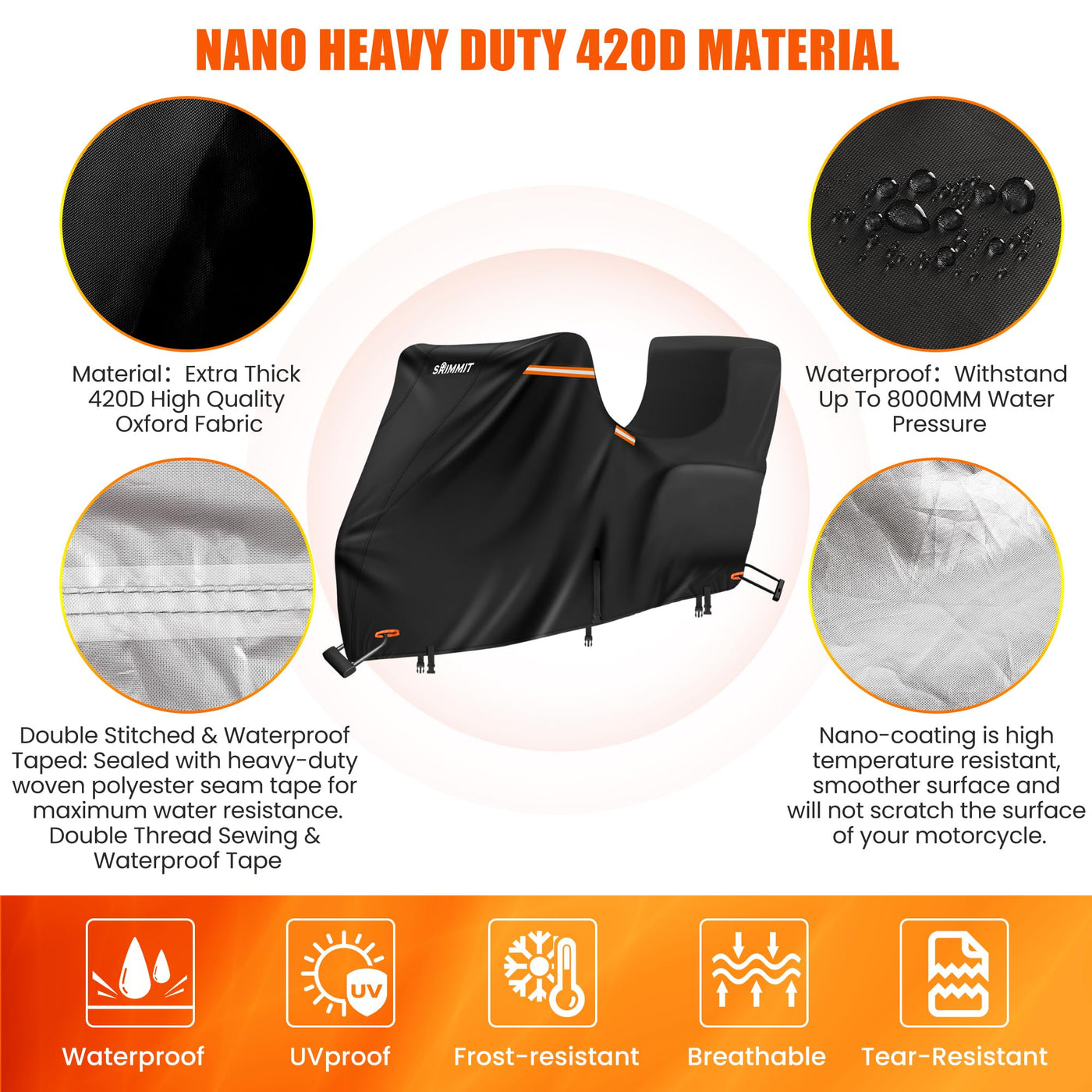 Motorcycle Cover Harley Davidson With Side+Top Box,420D Heavy Duty,Nano-Coated,Harley Bike Cover For Gold Wing,Road Master,Road
