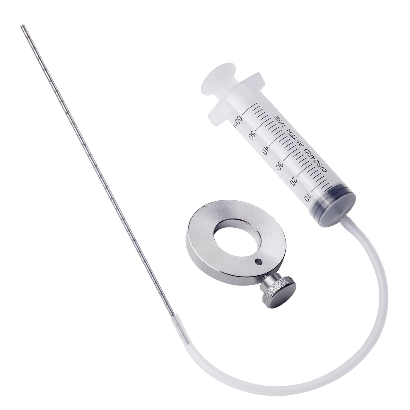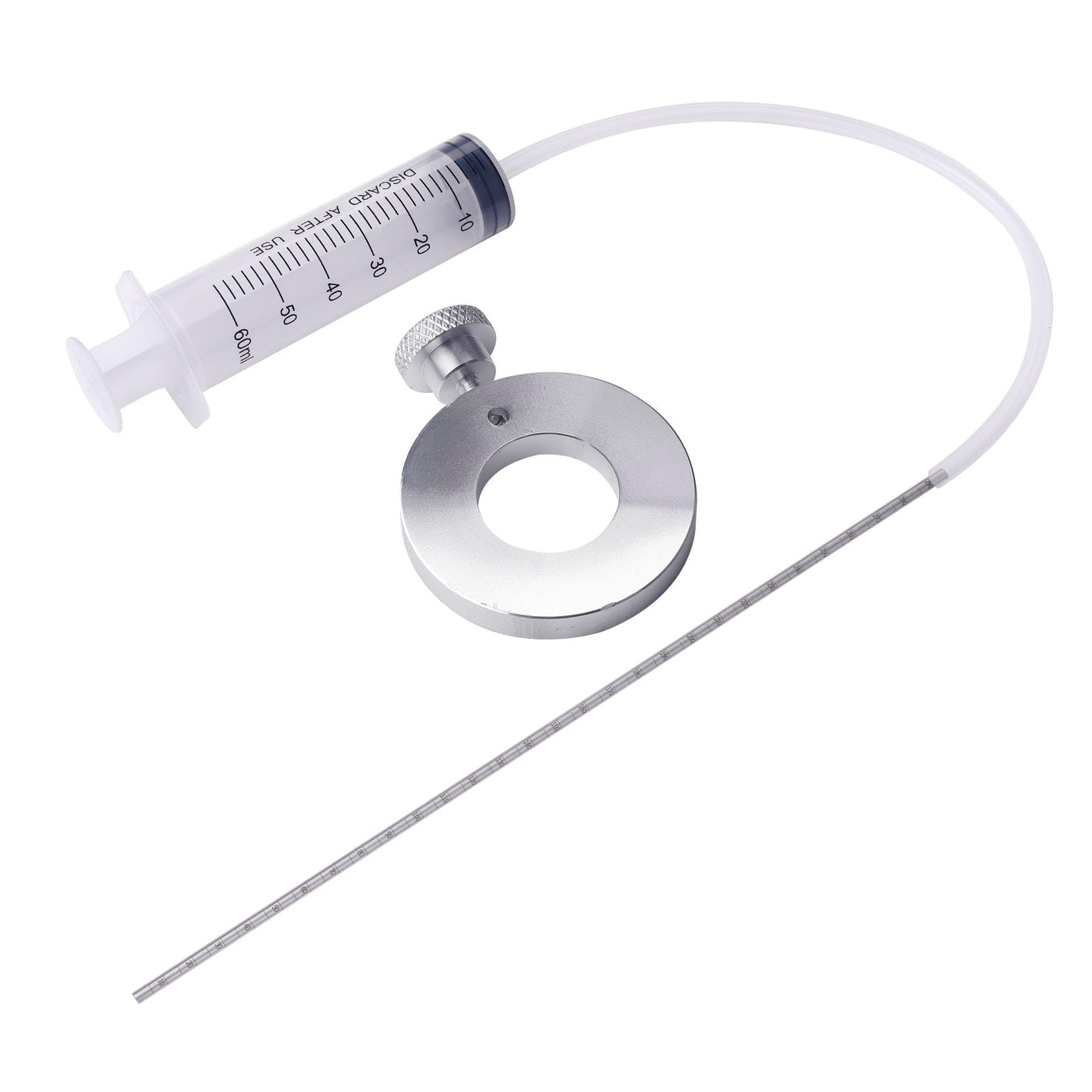 Q: How do I use the Fork Oil Level Gauge?A: To use the Fork Oil Level Gauge, simply fill the 60ml syringe with oil, attach the clear hose, and use the adjustable ring to measure the oil level accurately from 0 to 300 mm in 0.5 cm increments.