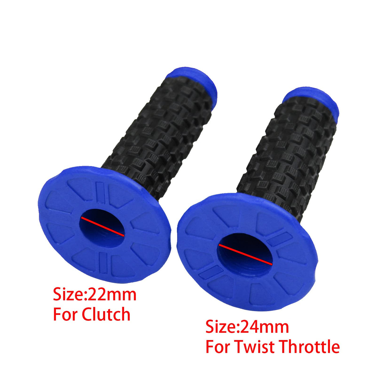 ?COMFORTABLE TO USE? This handlebar grip was made of superior rubber. You can hold it comfortably, there are many raised anti-skid particles on the surface that allow you to control the vehicle more safely. ?WEAR WELL? It has high strength, even if you fold it in half, it will not break. ?SHOCK ABSORPTION? Vibrasonix pillow top eliminates vibration and cushions impact. ?UNIVERSAL? The grips fit to all tubes which diameter is 7/8'' (22mm). ?!!Note!!? The diameters of the left and right grips are different, for clutch is 22mm, for twist throttle is 24mm.
