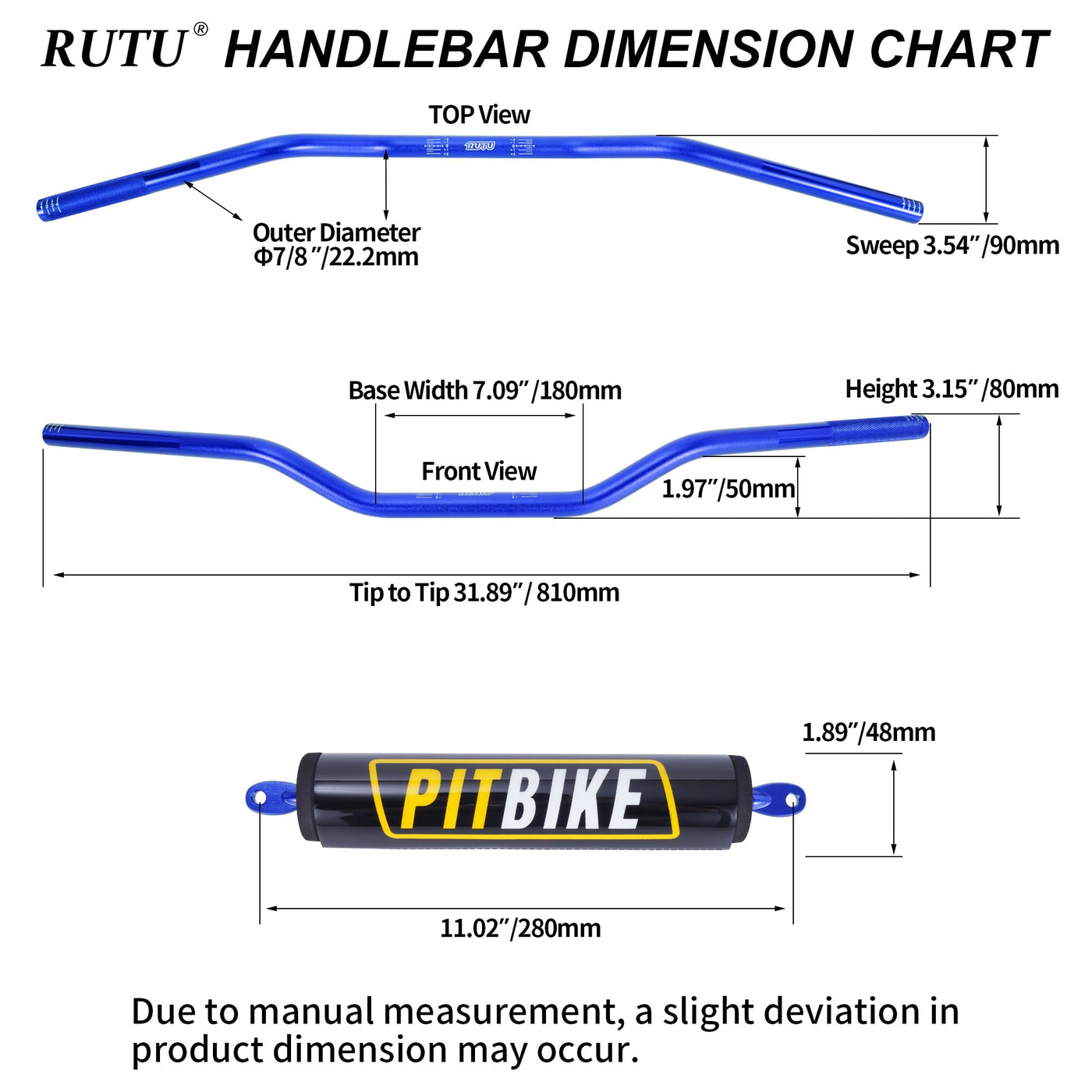 Motorcycle Handlebars 7/8 Inch,RUTU Upgraded Universal Dirt Bike Handle Bar with Crossbar Pad Low-Rise Pit Bike Handlebar for Motocross ATV Quad - Blue
